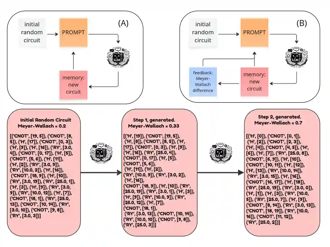 翻译:大型语言模型(LLM)能够生成结构化产物,但将其作为科学设计的可靠优化器使用,需要一种在黑盒评估下进行迭代改进的机制。本文将量子电路综合构建为一个闭环的测试时优化问题:LLM 对固定长度的门列表提出编辑建议,外部模拟器则使用 Meyer-Wallach (MW) 全局纠缠度量来评估生成的状态。我们提出了一种轻量级的测试时学习方案,该方案能够复用先前的高性能候选电路作为显式记忆轨迹,通过分数差异反馈来增强提示,并应用“从最佳重启”采样以逃离可能的性能平台期。在固定的 20 量子比特设置下,即使没有反馈和“从最佳重启”机制的优化循环,也能在一系列门预算范围内改进随机初始电路。为了提升性能和成功率,我们使用了完整的学习策略。对于 25 量子比特的情况,该策略缓解了在单纯查询时出现的显著性能平台期。除了原始分数,我们还分析了合成状态的结构,发现高 MW 分数的解可能对应于稳定子态或类图态结构,但由于度量特性和提示设计,并不能保证完全连通性。这些结果既说明了记忆评估器引导的 LLM 优化在电路综合中的潜力,也揭示了其局限,并凸显了利用既有的人为理论定理来优化设计定制化研究工具的关键作用。