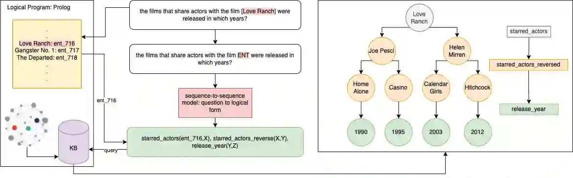 Answering questions over domain-specific graphs requires a tailored approach due to the limited number of relations and the specific nature of the domain. Our approach integrates classic logical programming languages into large language models (LLMs), enabling the utilization of logical reasoning capabilities to tackle the KGQA task. By representing the questions as Prolog queries, which are readable and near close to natural language in representation, we facilitate the generation of programmatically derived answers. To validate the effectiveness of our approach, we evaluate it using a well-known benchmark dataset, MetaQA. Our experimental results demonstrate that our method achieves accurate identification of correct answer entities for all test questions, even when trained on a small fraction of annotated data. Overall, our work presents a promising approach to addressing question answering over domain-specific graphs, offering an explainable and robust solution by incorporating logical programming languages.