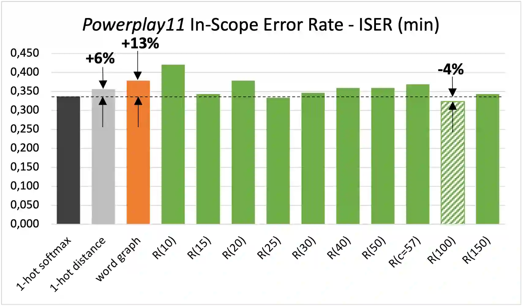 翻译:这项工作探索了在需要检测范围外输入时在意图分类中流行的单热编码方法的内在局限性。虽然最近的工作表明,当意图类别以基于特定领域知识的密度矢量为代表时,OOS的检测可以显著改进,但我们在本文中争辩说,由于密度矢量为一热编码方法的优点,这些增益更有可能代表OOS空间的复杂性。我们首先展示了密度矢量编码如何能以比单热编码方法更富的表层生成OOS空间。我们然后用四个标准意图分类数据集的经验展示了,即无知识、随机生成的意向类别密度矢量编码能够产生巨大收益,超过一热编码的20%,而且比一个数据集的先前、以域内知识为基础的SOTA还差。我们最后描述了一种新算法,以寻找良好的密度矢量编码,并展示其使用的初步但有希望的实验结果。