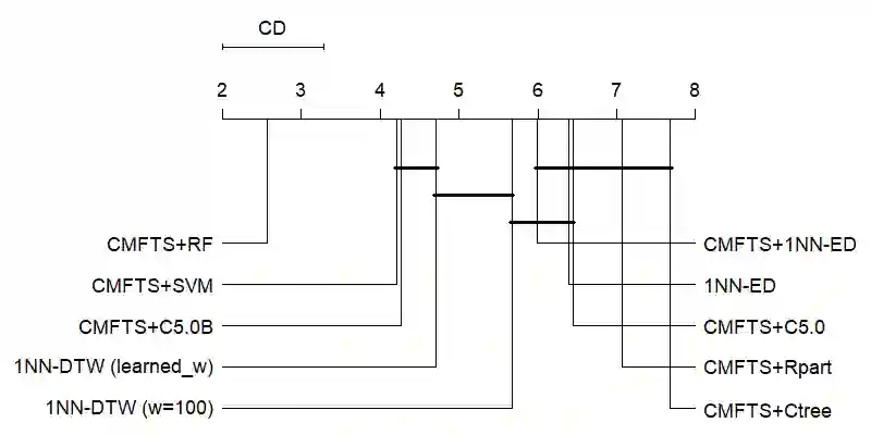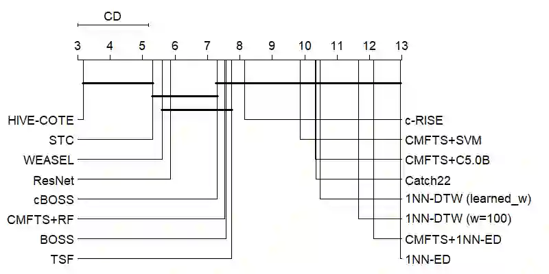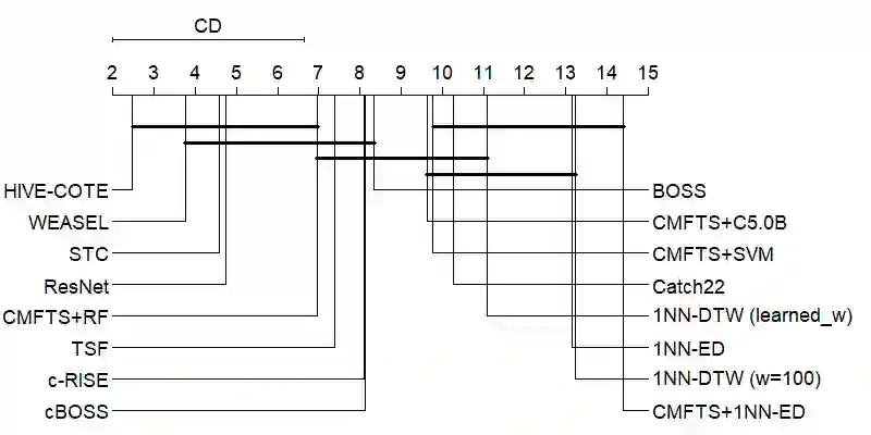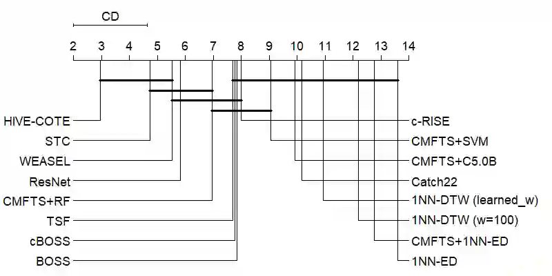 翻译:由于世界逐渐数字化,时间序列的分类是不同学科中一个日益严重的问题。目前,时间序列中最先进的分类方式主要是由基于变换的组合的等级化投票组。这种算法由五大模块中分布的不同领域的若干分类师组成。根据内部评估程序衡量的每个模块获得的结果的组合使得这一算法能够在最新技术中取得最佳结果。一个拥有动态时间扭曲的近邻仍然在任何时间序列分类问题中作为基础分类师,因为其简单性和良好结果。尽管它们的表现不同,它们具有共同的弱点,即它们不能解释。在时间序列分类方面,准确性和可解释性之间存在着一种权衡。在这项工作中,我们提出了一系列特点,能够提取关于时间序列结构的信息,以面对时间序列分类问题。这些特点的使用使得在时间序列问题中使用传统的分类算法。我们提案的实验结果显示,与第二和第三最佳的可变式模型相比,在统计上没有显著的差异。除了提出具有竞争力的结果外,我们提出的基于可变式解释结果的精确性之外,还能够提出基于提议的精确性。