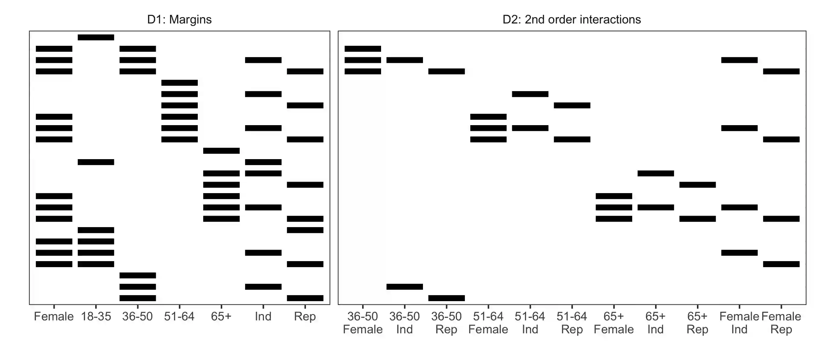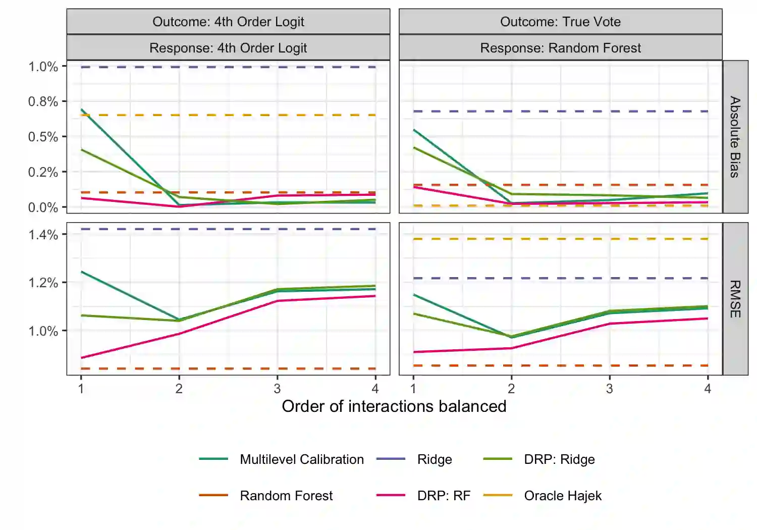 翻译:在2016年11月的美国总统选举中,许多州一级的民意测验,特别是在上中西部州,错误地预测了获胜候选人。对本次投票空缺的一个主要解释是,传统投票响应率的急剧下降导致更多地依赖统计方法来调整相应的偏差,而这些方法未能适应教育、种族和地理区域等关键变量之间的重要互动。在传统调查方法中,许多州一级的民意测验,特别是在上中西部州,错误地预测了获胜候选人。许多州一级的民意测验,特别是在上中西部州,错误地预测了获胜候选人。这次投票空缺的一个主要解释是:传统调查方法仍然具有挑战性:通常只平衡差额,而完全平衡所有互动的州一级的民意测验后,只有一小部分变量才可行。在本文件中,我们建议多层次校准校准校准加权,对边际平衡和较松散的对更高级别互动的限制。这包括了批准后的一些好处,同时保留了萎缩的保证。我们随后纠正了由于通过灵活的结果模式放松限制而产生的偏差造成的偏差;我们称之为“双级回归”和“事后批准”的方法(DP)。我们将这些这些估定这些“偏差者”的“选择”的属性属性属性属性属性属性属性特性描述这些“衡量”的“衡量”的“衡量”的“衡量”和“时,并展示”的“选择”的“选择”的“选择”的“选举”的“选举”的“比例”是“结果”的“结果的“结果的“结果的“结果”的“结果”的“比例”方法,显示的“我们”是“我们”的“我们”的“我们”的“对”的“选择”的“选择”的“选择”的“选择”的“在”的“选择”的“选择”的“选择”的“在”的“选择”的“选择”的“在”的“选择”的“在”的“在”的“选择”的“在”的“在”的“在”的“在”的“在”的“在”的“在”的“在”中,在”的“在”的“在”的“在”中,在”的“在”的“在”的“在”中,在”的“在”的“在”中,在”中进行中的“在”中进行中的“