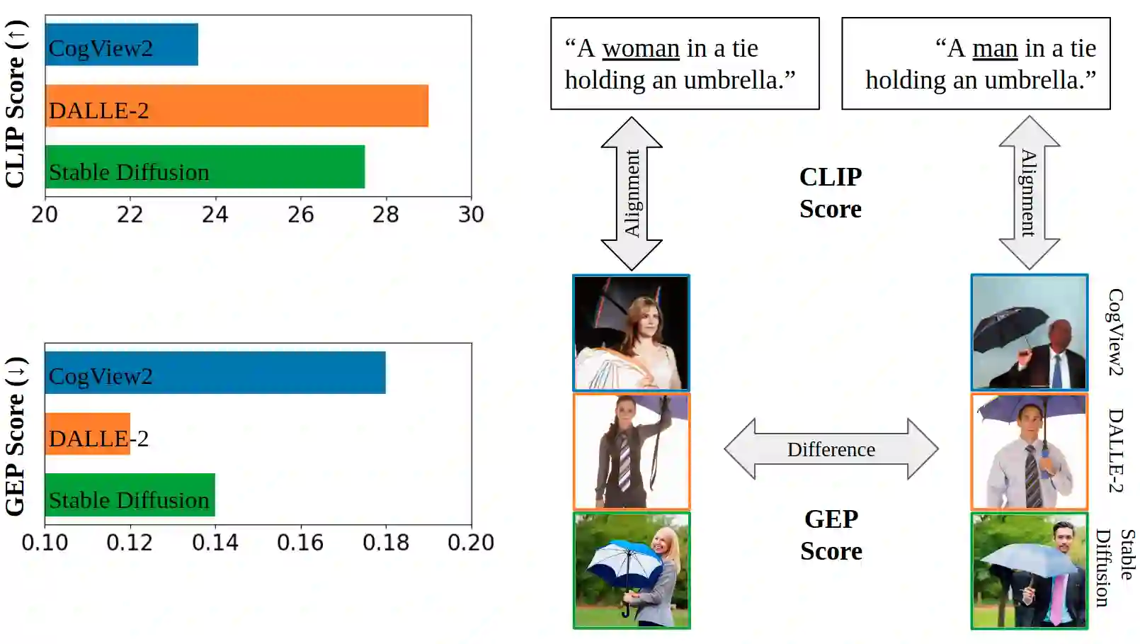 翻译:文本到图像模型可以产生基于文字输入的高质量图像,这些模型最近使各种内容生成工具成为了各种内容生成工具。尽管这些生成图像的分布对下游应用产生了显著影响,但仍然不能完全理解,特别是对于不同性别潜在的陈规定型特征而言。在这项工作中,我们提出了一个范例(性别展示差异),利用微小的自我展示属性来研究文本到图像模型中性别的表述方式如何不同。我们通过在输入文本中(例如“女性”或“男性”)对性别指标进行验证,我们通过人文注解来量化展示中心特征(例如“衬衫”和“服装”)的频率差异,并采用新的衡量标准:GEP。此外,我们提出了一种自动方法来估计这种差异。基于我们的方法的自动GEP指标与人文说明的相关性高于基于现有的CLIP分数,这始终贯穿三个最先进的文本到图像模型。最后,我们展示了我们在与性别陈规定型观念有关的职业方面的衡量标准的普遍化能力。