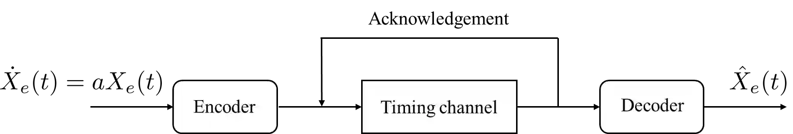 翻译:我们考虑稳定一个“ 触发” 频道上未扰动、 斜线、 线性系统的问题, 即一个通过传输符号的时间戳传递信息的频道。 接收从传感器传送到闭环系统中控制器的每个符号时会受到一些随机的延迟。 传感器可以在连续传输和控制器之间等待时间将信件编码成连续符号的跨接收时间。 这个设置类似于一个电话系统, 即发送器通过“ 环” 和在建立连接所需的随机延迟后向接收器发出电话信号的频道; 接收器知道接收到的“ 环” 。 由于传感器和控制器之间没有数据有效交换, 接收到的每个符号, 这个设置提供了一个抽象的设置, 用于执行以零支付率进行事件触发控制。 我们显示以下的稳定要求: 系统状态要接近于概率为零, 频道的定时能力应该至少是“ 系统最大幅度的连接率 ; 最短的传输速度, 反之, 使用最接近的标志性时间轴战略, 使用最精确的精确的精确时间间隔战略, 显示我们所收到的基本信号的精确的精确的顺序控制结果 。 我们显示一个总的精确的精确的精确的精确的路径 。 将显示, 将显示, 发送的精确的精确的精确的策略将显示结果 。