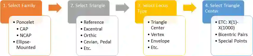 翻译:我们描述一个基于浏览器的应用程序,用于实时可视化庞斯莱三期家庭Boncelet 3-周期的美丽动态几何,重点是高度反应灵敏、视觉光滑、“实时”实验,实验涉及三角中心和(或)量性变异物的显地,另一个重点是制作美丽的彩色图像。一旦对基于浏览器的模拟进行定义,就可以很容易地与同事共享和(或)作为出版物的链接,从而不再需要费时的视频制作和上传。