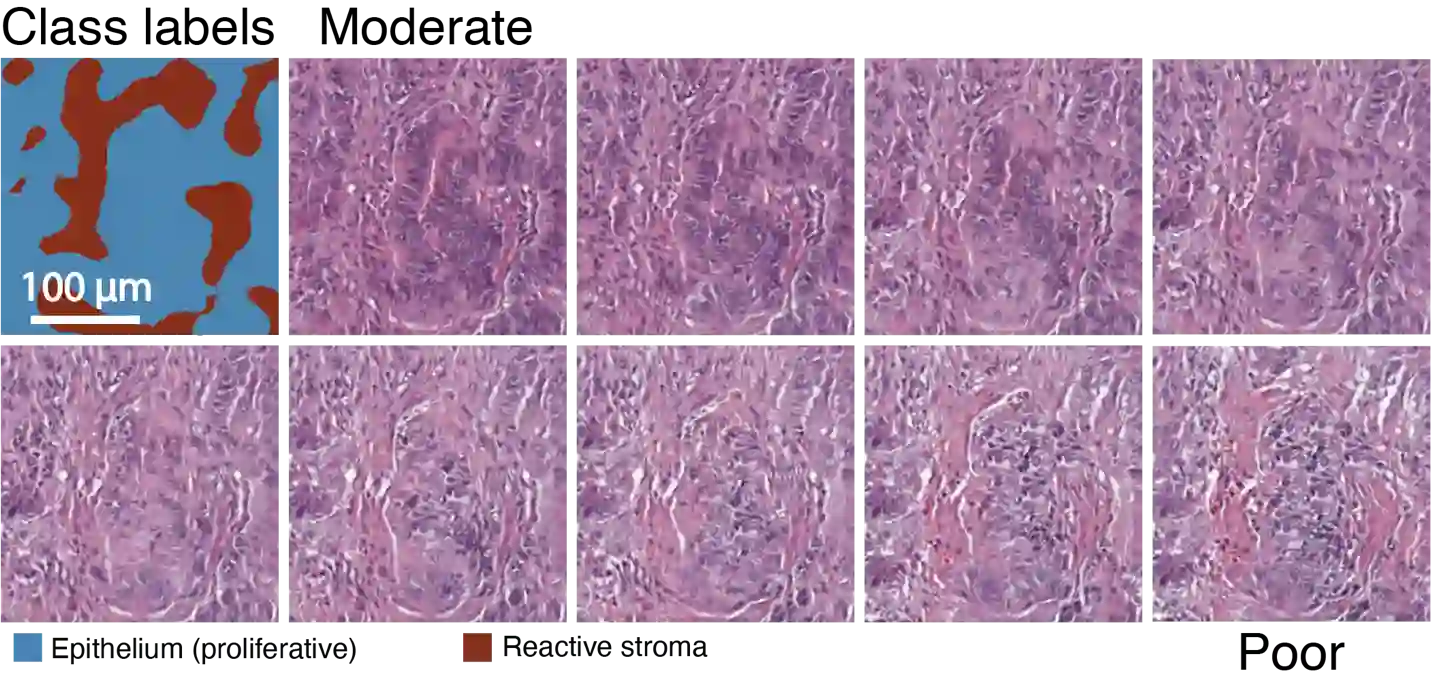 翻译:对从FFPE组织区块中制作的玻璃幻灯片上薄割的沾染组织进行光学微观显微镜检查,这是组织诊断的黄金标准。此外,任何病理学家的诊断能力和专门知识都取决于他们在常见和稀有变异形态方面的直接经验。最近,采用了深层次的学习方法来成功地显示这类任务的高度准确性。然而,在专家一级获得附加说明的图像是一项昂贵和耗时的工作,人工合成的生理图象会大有助益。在这里,我们提出一种方法,不仅产生能复制常见疾病的诊断性细胞图象,而且还提供用户生成新的和稀有形态特征的能力。我们的方法涉及开发一种基因化对抗网络模型,以综合受阶级标签制约的病理图象。我们研究了这一框架在合成现实的先质和结肠图象方面的能力,并评估了这些图象在提高机器学习方法的复杂诊断能力方面的实用性,以及由经验丰富的解算性病理学家小组使用这些图象图象图象图象,同时提供一种用户能力生成新的和罕见形态图象的能力。我们通过一个类似的组织图象分析框架进行了类似的模型的合成数据分析,我们进行一个比较的比较的模型数据分析,最后的模型,我们进行了一个比较的研判了一种比较的模型,我们能的模型,我们进行了一种比较的研判的研判的研判的研判的研判的研判的比。