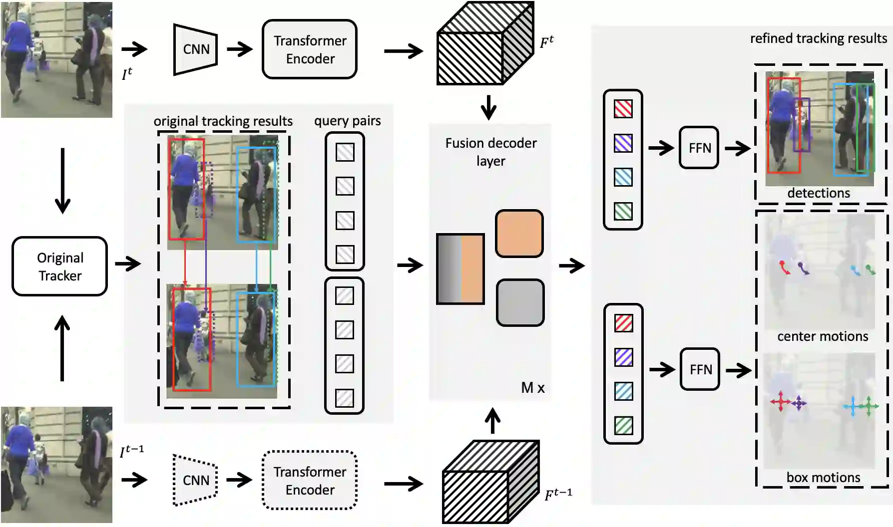翻译:多重对象跟踪( MOT) 是包含检测和关联的任务 。 许多跟踪者已经取得了竞争性的性能 。 不幸的是, 由于缺乏关于这些子任务的信息交流, 它们往往偏向于其中之一, 在复杂的情景中表现不佳, 比如在跟踪人群中的个人时, 目标的必然误差和误差轨迹。 本文提出了 TransFinner, 一种基于变压器的方法, 用于修复后MOT。 它是一个通用附加框架, 取决于查询对比、 原始跟踪者与 TransFinner之间的桥梁。 每一个查询对, 通过聚合解码器, 产生精细的探测和运动线索。 在此之前, 它们在原始跟踪结果( 定位和类预测) 的指导下, 以焦点和全面的方式完成跟踪完善。 实验显示, 我们的设计在MOT17基准上是有效的, 我们把CentTracrack从67.8% MOTA和64. 7% UNFD1提升为7.5% MOTA和 66.8% UNFIF 1 。