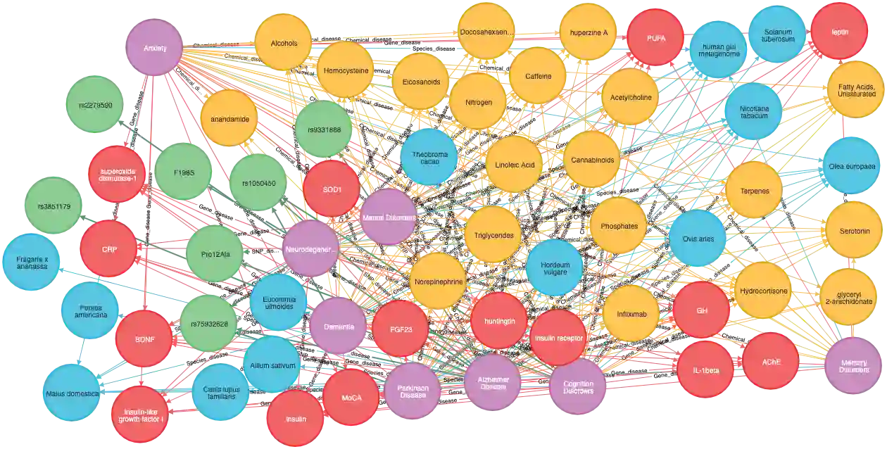 翻译:迄今为止,大多数神经退化性疾病都没有有效的治疗方法,但是,某些食物可能与这些疾病有关,并带来防止或推迟神经退化性发展的机会。我们的目标是利用文献挖掘研究神经退化性疾病与饮食的关系,以建立一个神经退化性疾病知识图。我们收集了4 300份出版物的摘要中与神经退化性疾病和饮食有关的生物医学说明(疾病、化学、基因、物种、SNP和Mutation)。 PubTator是一个由NIH支持的工具,可以从文献中提取生物医学概念。从这些说明中产生了一个知识图。然后,对图表嵌入者进行了“节点算法”培训,以支持潜在的概念组合和类似的概念识别。我们发现了一些可能来自饮食并对神经退化性疾病产生影响的与食物有关的物种和化学品。