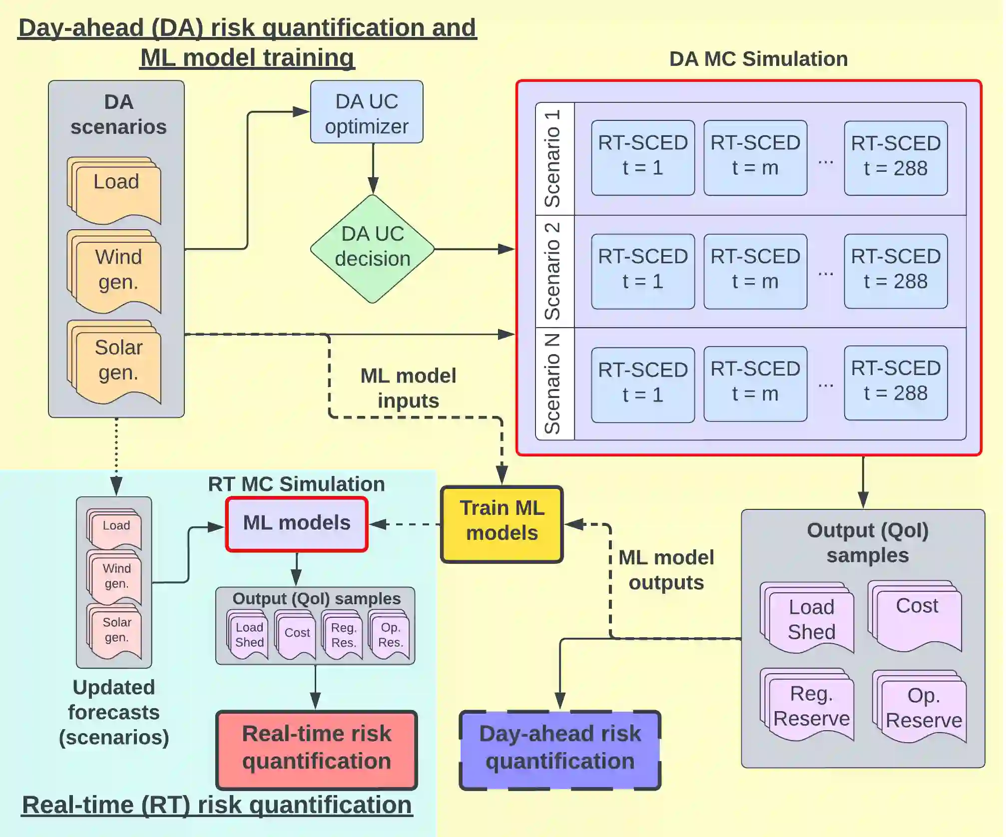 翻译:在可再生能源发电占很大比例的电网中,运营商将需要更多的工具来评估由于负荷和发电的波动性增加而导致的业务风险。前期不确定性传播问题的计算要求必须解决众多受安保限制的经济发送(SCED)优化,这是实时风险评估的主要障碍。本文件建议采用 " 实时风险评估学习框架(JITRALF) ",作为替代方案。JITRALF每天每一小时培训一个风险代孕员,利用机器学习(ML)来预测估计风险所需的数量,而没有明确解决SCED问题。这大大减轻了前期不确定性传播的计算负担,并允许快速实时估算风险。该文件还提出了一个新的不对称损失功能,并表明使用不对称损失培训的模式比使用对称损失功能的模式效果更好。JITRALF在法国的传输系统上进行了评价,以评估业务储备不足、装载风险和预期运作成本的风险。