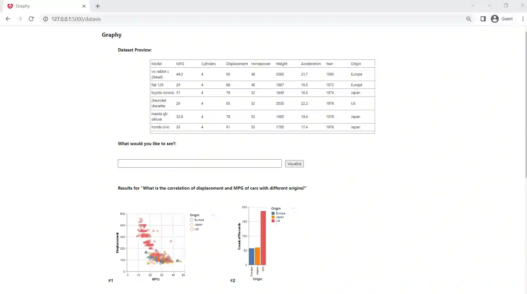 We propose a new technique based on program synthesis for automatically generating visualizations from natural language queries. Our method parses the natural language query into a refinement type specification using the intents-and-slots paradigm and leverages type-directed synthesis to generate a set of visualization programs that are most likely to meet the user's intent. Our refinement type system captures useful hints present in the natural language query and allows the synthesis algorithm to reject visualizations that violate well-established design guidelines for the input data set. We have implemented our ideas in a tool called Graphy and evaluated it on NLVCorpus, which consists of 3 popular datasets and over 700 real-world natural language queries. Our experiments show that Graphy significantly outperforms state-of-the-art natural-language-based visualization tools, including transformer and rule-based ones.