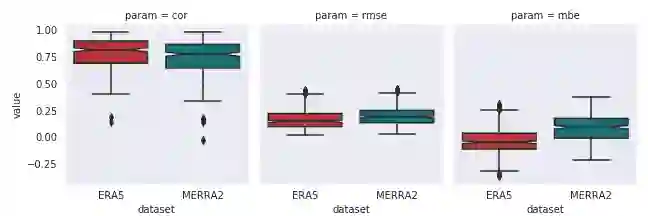 翻译:重新分析数据被广泛用于模拟可再生能源,特别是风能发电。虽然MERA-2在许多研究中已成为一个不实际的标准,但最新的ERA5重新分析最近也变得重要。在这里,我们利用这两个数据集模拟风力发电,并评估在与历史风能发电相比验证时各自在关联和错误方面的质量。然而,由于其空间分辨率粗略,再分析未能充分反映当地气候条件。因此,我们进一步运用了两个版本的全球风力图(GWA)的偏差纠正,并评估了相应的模拟质量。数据集的潜在用户也可以从我们对模拟质量指标的空间和时间汇总影响的分析中受益。虽然进行了类似的研究,但主要覆盖欧洲的有限地区。相比之下,我们考察各区域,这些区域在普遍气候方面差异很大:美国、巴西、南非和新西兰。我们的主要结论是:(i) ERA5超越了MERA-2,因此评估了相应的模拟质量。(ii) 数据集的潜在用户也可以从我们对模拟质量和时间汇总对模拟质量的影响进行的分析中受益。虽然全球气象数据系统2的数值不断降低,但全球航空的比值却不断降低。