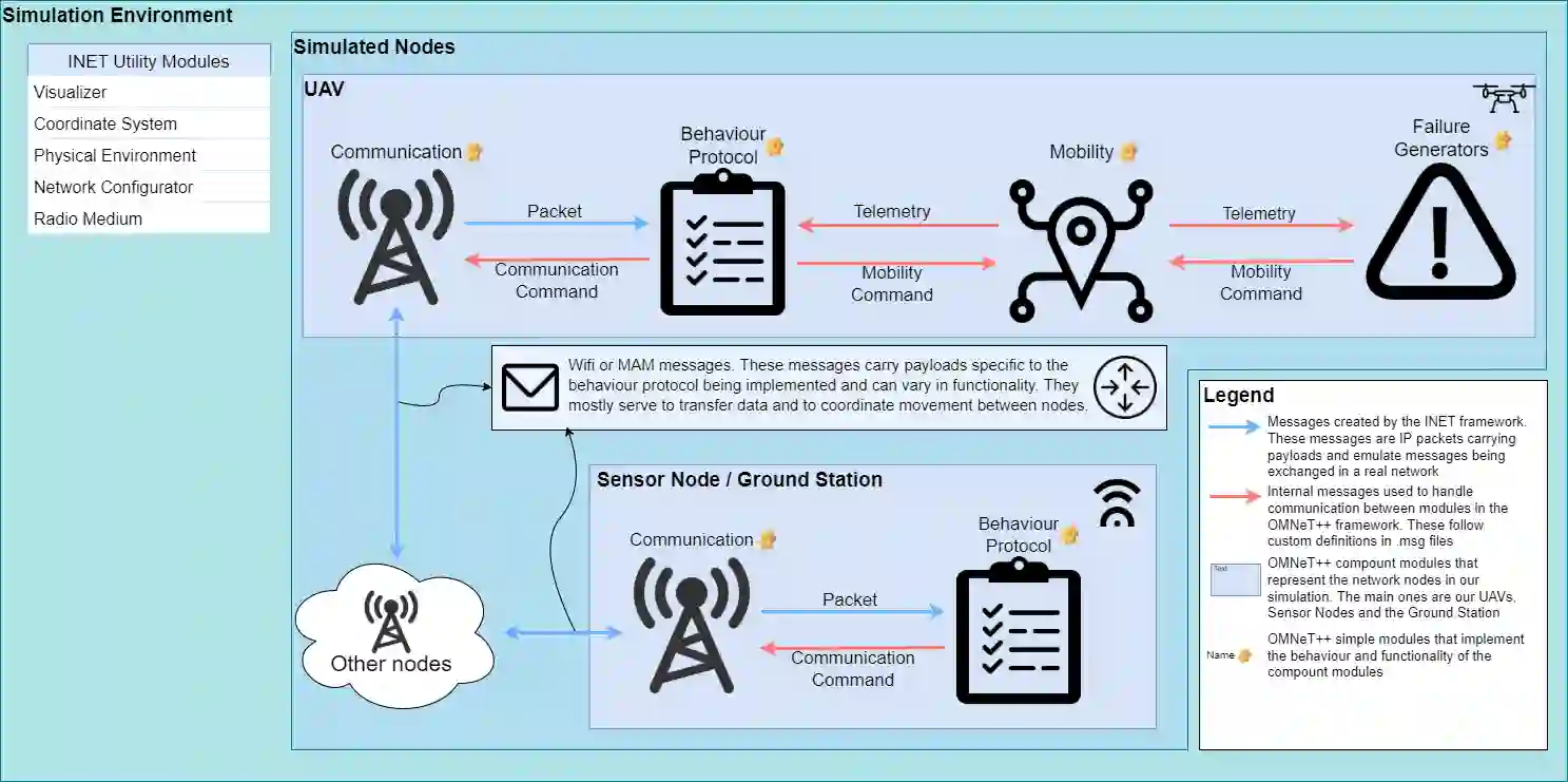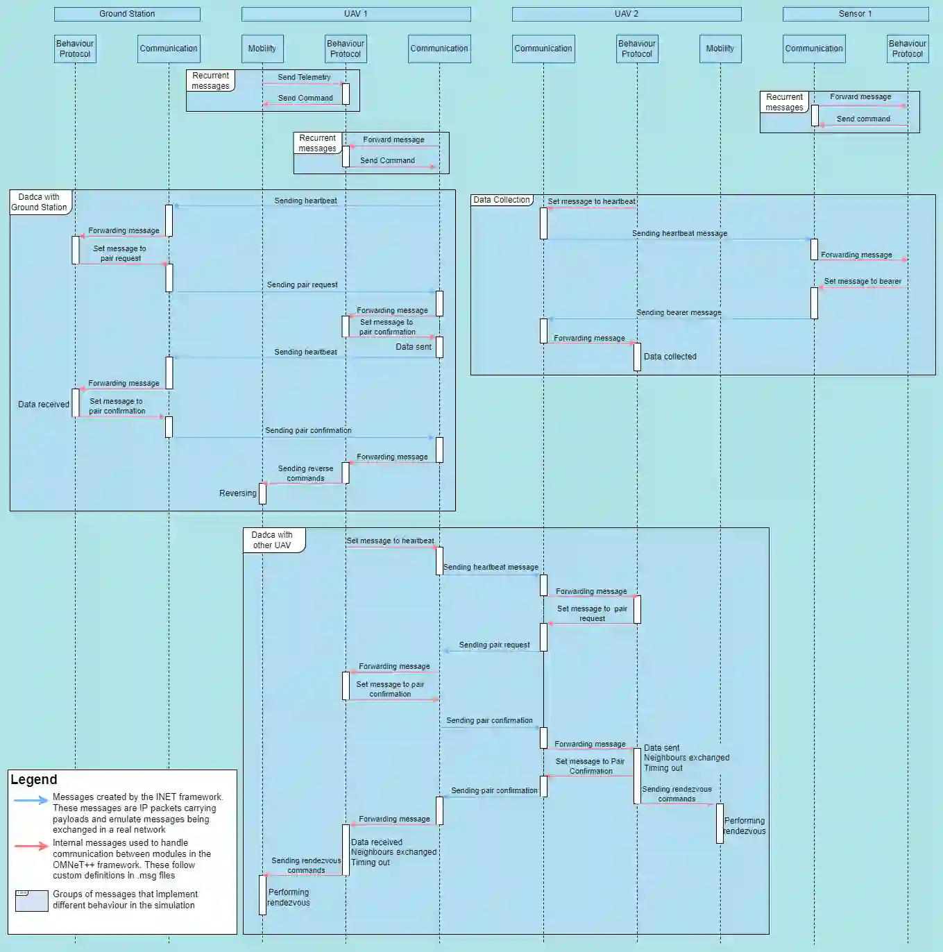 翻译:本技术报告描述了GRADYS-SIM,这是一个在假设的地貌和通过RF无线电进行通信的联合飞行任务中模拟无人驾驶航空器合作成群的框架,建立这个框架是为了协助和核查在GRADYS项目中正在开发的通信、协调和背景意识协议。GRADYS-SIM使用OMNET++模拟图书馆及其INET模型套件,并允许添加一些经修改或定制的模拟组件、网络配置和车辆协调版本,以便通过框架制定和测试新的协调协议。框架模拟载有一些MAVLink指令的文件所要求的无人驾驶航空器移动,并受到不同网络情况的影响。UAVSwarm协调协议产生于UAV的个体互动,目的是优化在某一区域收集传感器数据的工作。它还允许模拟某些类型的故障,以测试协议的适应性。模拟中的每个节点都是高度可调和的,以测试不同的网络透析、协调协议、节点硬件配置和更快速的任务。