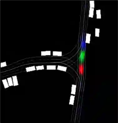翻译:在复杂的城市环境中实现安全且可解释的运动规划,需要对双向多智能体交互进行推理。这种推理需要估计潜在自车驾驶操作的代价。许多现有规划器采用基于采样的方法生成初始轨迹,并通过优化对未来环境状态的学习预测来细化轨迹,这需要一个编码期望车辆行为的代价函数。设计这样的代价函数极具挑战性,尤其是在需要考虑广泛复杂城市场景的情况下。我们提出HYPE:基于自车提议条件预测的混合规划,该规划器将来自学习提议模型的多模态轨迹提议作为启发式先验,集成到蒙特卡洛树搜索(MCTS)细化过程中。为建模双向交互,我们引入了一种自车条件占据预测模型,从而实现一致且场景感知的推理。通过考虑提议驱动的引导,我们的设计显著简化了细化过程中的代价函数设计,仅需极简的基于网格的代价项。在大型真实世界基准测试nuPlan和DeepUrban上的评估表明,HYPE有效实现了最先进的性能,尤其在安全性和适应性方面。