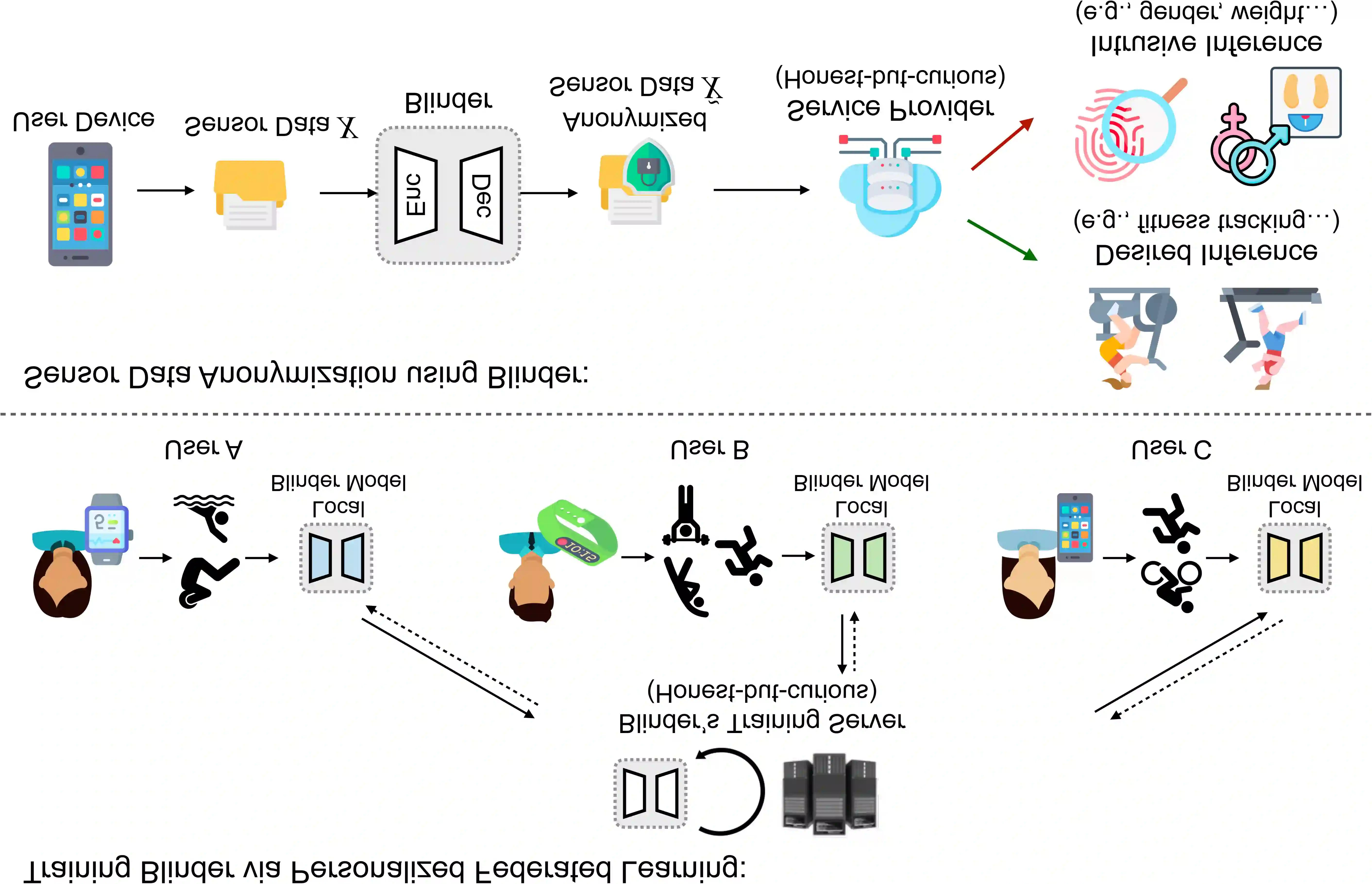 翻译:本文提出一个传感器数据匿名模型,该模型在分散化数据方面受过培训,并在数据公用和隐私之间实现可取的权衡,即使在收集的传感器数据具有不同基本分布分布的多种环境中也是如此。我们的匿名模型,即所谓的盲人,以对抗性方式培训的变异自动编码器和歧视者网络为基础。我们使用模型-不可知元学习框架,使通过联结学习培训的匿名模型适应每个用户的数据分布。我们评估了不同环境中的盲人,并表明它提供了端对端隐私保护,其代价是隐私损失增加4.0%,数据效用减少4.24%,而中央数据培训的是最先进的匿名化模型。我们的实验证实,盲人可以一次模糊多个私人属性,并且有足够的低功率消耗量和计算间接费用,用于边缘装置和智能手机,以便实时对传感器数据进行匿名。
