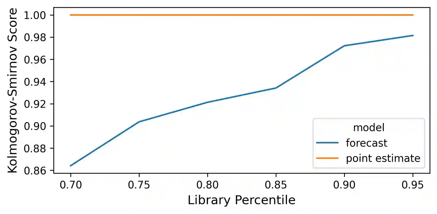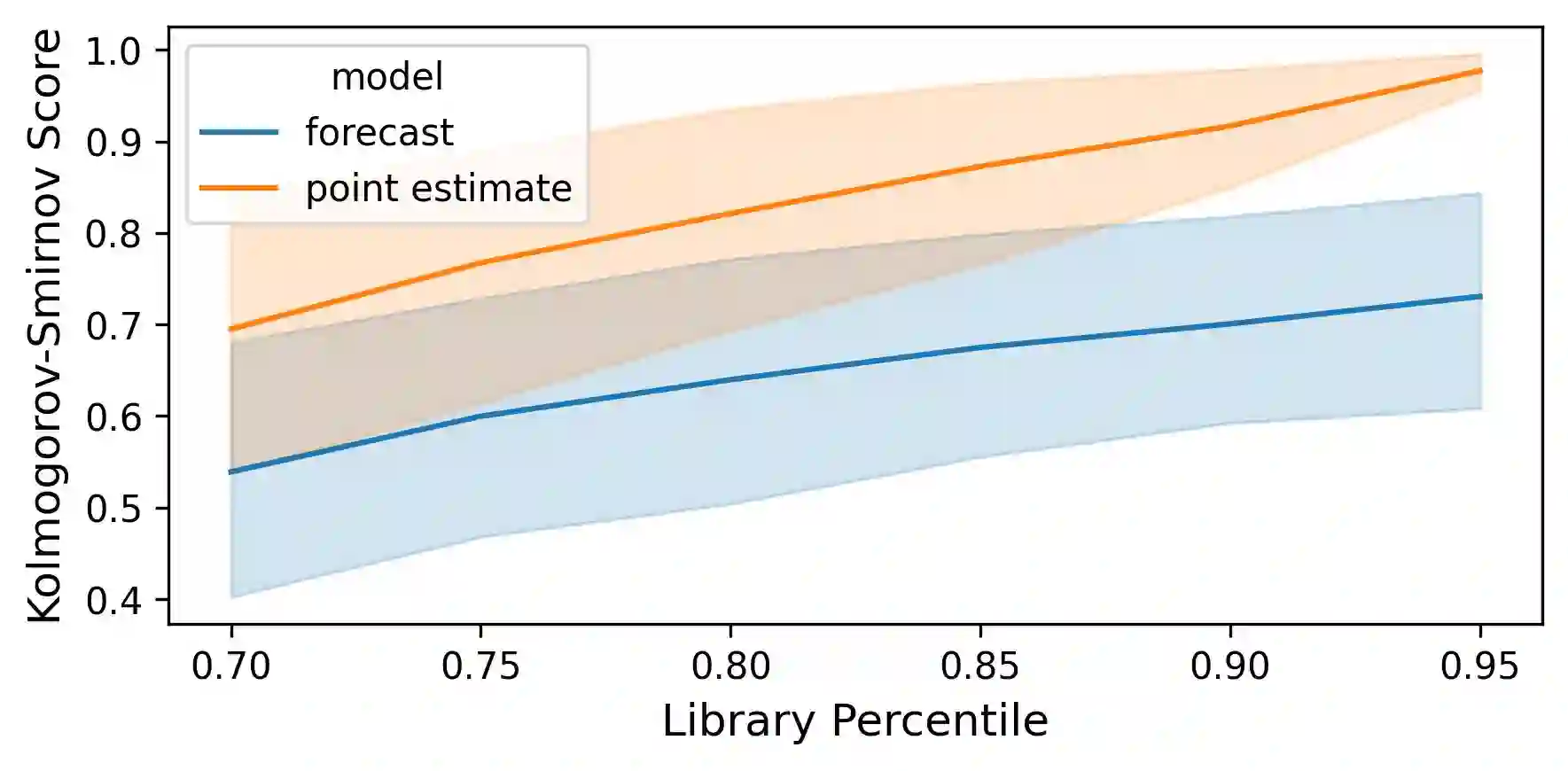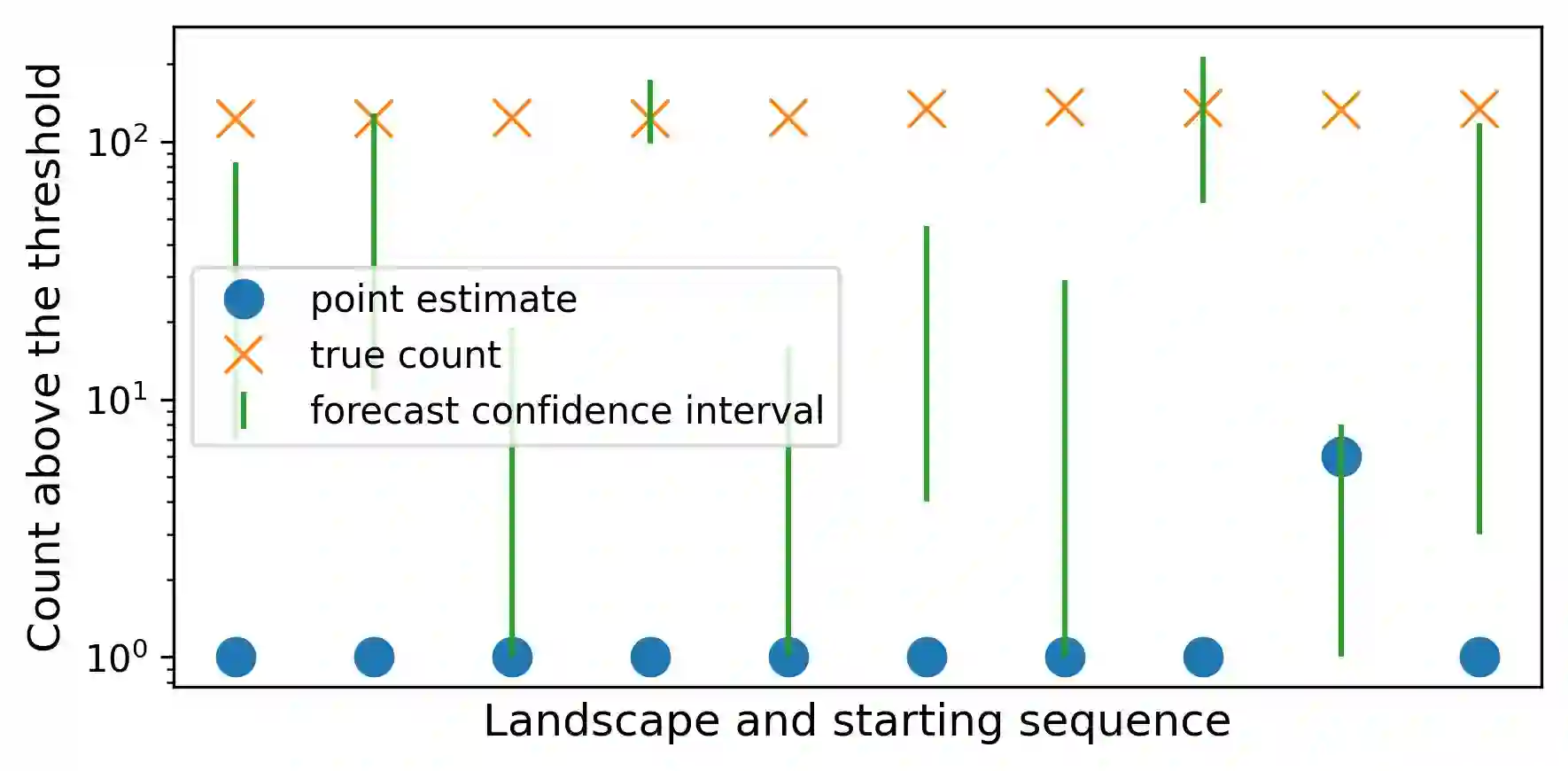 翻译:设计和优化具有特定功能的生物序列的能力将释放技术和医疗保健的巨大价值。近年来,机器学习指导序列设计已经大大推进了这一目标,尽管验证实验室或诊所的设计序列需要许多个月和大量劳动。因此,在将资源投入实验之前,评估设计数据集包含所需质量序列的可能性(通常不在我们培训数据标签分发范围之内)是有价值的。 预测是许多领域的一个突出概念,可以延迟反馈(例如选举),但在序列设计方面没有使用或研究过。 我们在这里提出了一个方法,用以指导决策,根据模型提供的估计数预测高通量图书馆的性能(例如包含10 5美元的独特变量),为图书馆的标签分配提供一个海报。我们显示,我们的方法超越了天真地使用模型分数来估计图书馆业绩的基线,而图书馆业绩是目前用于此目的的唯一工具。