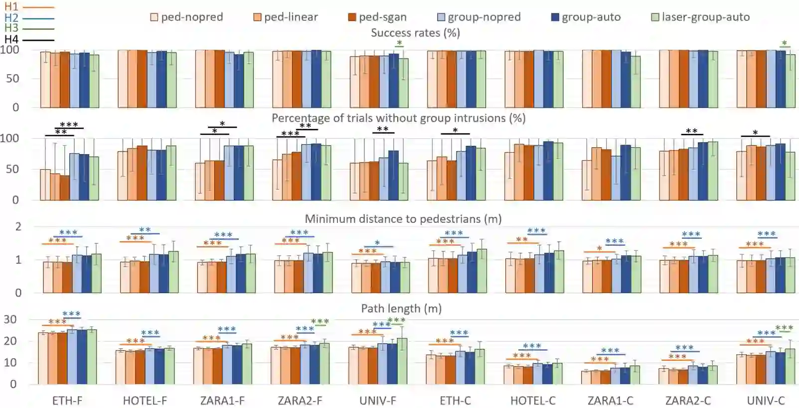 翻译:我们的重点是在行人场景等动态多试剂环境中规划机器人运动的问题。使机器人能够在这种场景中安全地、以社会上顺从的方式航行,需要说明正在演化的多剂动态。这个问题的现有办法倾向于使用微缩运动预测模型,以说明其他代理人的个人行为。虽然这些模型在轨迹预测基准中可能实现高度跟踪准确性,但它们往往缺乏对在拥挤场景中出现的群落结构的了解。在来自心理学的Gestalt理论的启发下,我们建立了一个模型预测控制框架(G-MPC),利用基于集团的预测来进行机器人运动规划。我们进行了广泛的模拟研究,涉及从两个现实世界行人数据集提取的一系列具有挑战性的导航任务。我们指出,G-MPC使机器人在统计上能够实现大大提高的安全性和减少集体侵入次数,而远低于由个人行人运动预测模型构成的一系列基线。最后,我们表明G-MPC可以处理噪音里达尔-斯坎估计,而没有重大性能损失。
