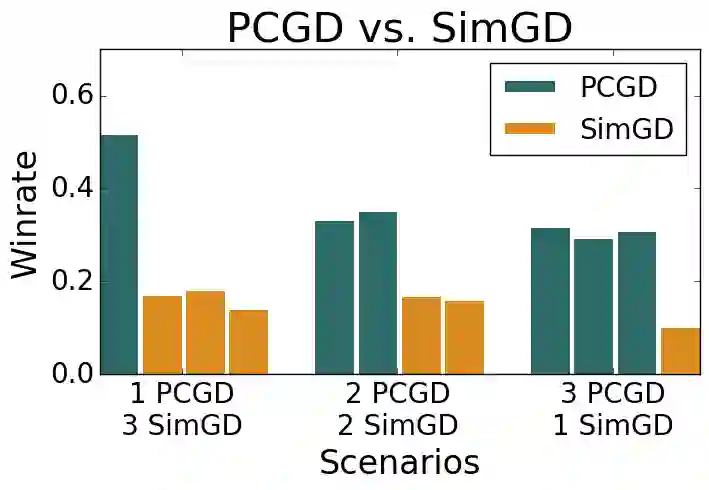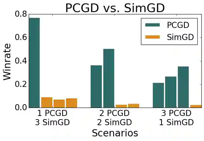 翻译:许多经济游戏和机器学习方法可被看成是竞争性优化问题,在这种情况下,多种代理机构正在最大限度地降低其各自的客观功能,这取决于所有代理机构的行动。虽然梯度下降是单一代理机构优化的可靠基本工作马匹,但往往会在竞争优化中导致振动。在这项工作中,我们提议多式矩阵竞争性梯度下降(PCGD),作为解决涉及任意数个代理机构的一般性和竞争性优化的方法。我们的方法的更新是以四面形正规化的当地多面体近似的纳什平衡方式获得的,并且可以通过解决直线方程系统来有效计算。我们证明PCGD与美元玩家普通和普通游戏的稳定固定点在当地趋同,并表明它不需要根据玩家互动行动的力量调整步数。我们使用PCGD来优化多面强化学习的政策,并展示其在蛇、Markov足球和电力市场游戏中的优势。由PCGDD外形剂培训的代理机构通过同时梯度下降、随机梯度调整以及蛇与Markov足球运动的超高位化方法培训。