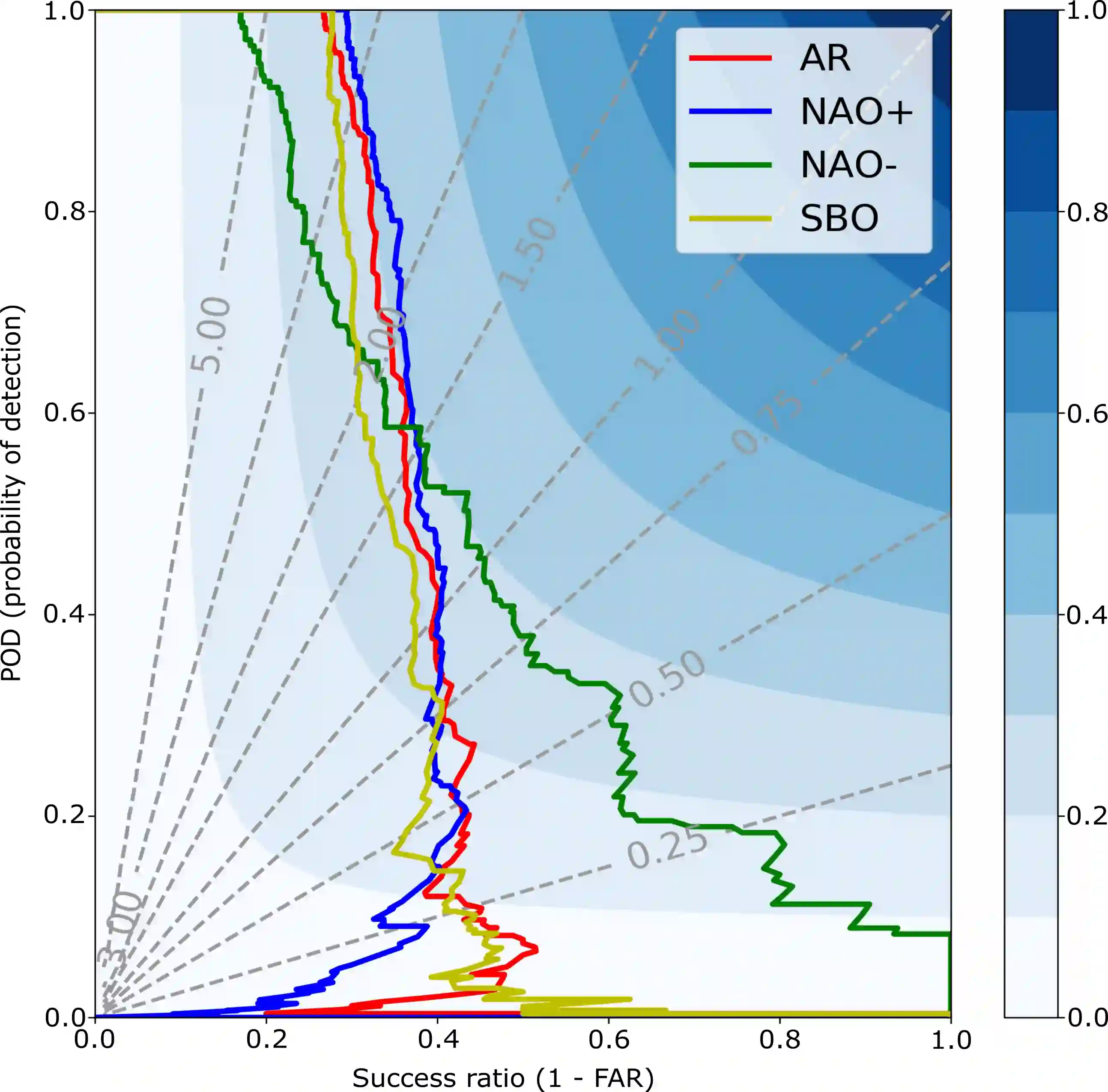 翻译:将大气状态分为有限数量的大规模环流系统是调查远程连接、恶劣天气事件的可预测性和气候变化的流行方法。在这里,我们调查基于变形变形神经神经网络(deCNNs)的受监督的机器学习方法,并将学习转移给未来寒冬1至15天的北大西洋-欧洲天气系统预报。我们运用机器学习文献中最先进的解释技术,确定与任何特定天气集群预测或制度过渡相关的特定感兴趣区域或潜在远程连接。我们显示了相对于若干典型气象基准以及后勤回归和随机森林的优异预测性业绩。我们还观察到德CNN在5至6天的周转时间比正常的革命神经网络取得比正常的更好的业绩。最后,我们认为,与以往的数据驱动的大气预报研究类似,转移至关重要。