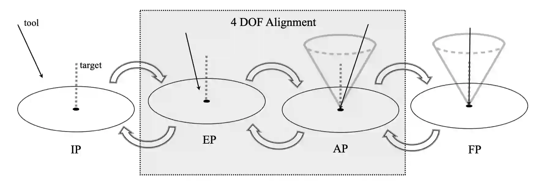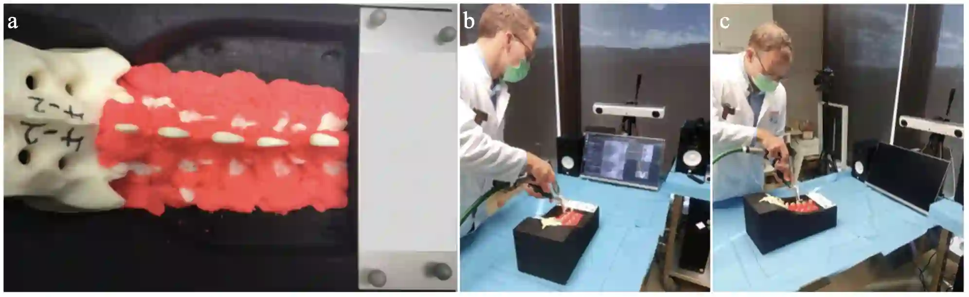 翻译:尽管图像引导外科手术协助系统在准确性方面有着不可否认的优势,但这种系统尚未完全满足外科医生在可用性、时间效率以及将其纳入外科工作流程方面的需要或期望;另一方面,自觉研究表明,通过涉及不同感官模式的多式联运反馈提供独立但因果相关的信息,可以提高任务性能;本篇文章调查计算机辅助外科导航的替代方法,为穿刺小球螺丝放置引入一种新的代谢方法,并讨论基于多感知反馈的先进解决方案;拟议方法包括基于频率调制(调制)合成(FM)自由四度任务校准新颖的代谢解决方案;我们比较了拟议的静音方法与视觉导航的准确性和执行时间,目前视像导航被视为艺术的状态;我们进行了一项幻门研究,17名外科医生在拟用隐喻法或传统视觉导航方法的指导下,在腰脊脊部执行冰棒螺丝放置任务。结果显示,拟议的方法与艺术状态一样准确,同时减少了外科医生在定向外科手术期间的自然导航重点。