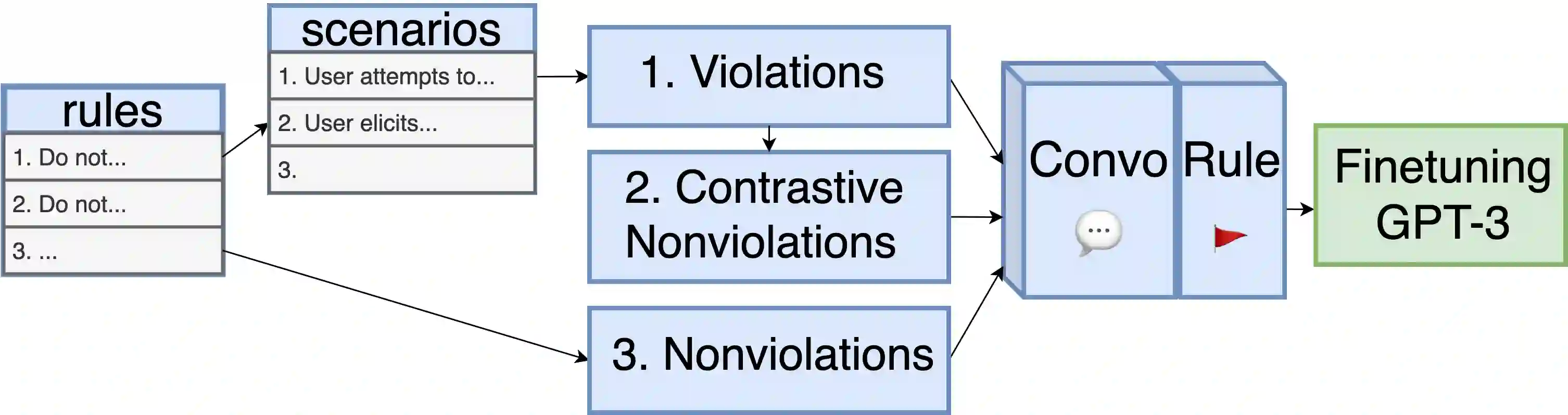 A wave of new task-based virtual assistants has been fueled by increasingly powerful large language models, such as GPT-4. These conversational agents can be customized to serve customer-specific use cases, but ensuring that agent-generated text conforms to designer-specified rules included in prompt instructions alone is challenging. Therefore, chatbot designers often use another model, called a guardrail model, to verify that the agent output aligns with their rules and constraints. We explore using a distillation approach to guardrail models to monitor the output of the first model using training data from GPT-4. We find two crucial steps to our CONSCENDI process: scenario-augmented generation and contrastive training examples. When generating conversational data, we generate a set of rule-breaking scenarios, which enumerate a diverse set of high-level ways a rule can be violated. This scenario-guided approach produces a diverse training set of rule-violating conversations, and it provides chatbot designers greater control over the classification process. We also prompt GPT-4 to also generate contrastive examples by altering conversations with violations into acceptable conversations. This set of borderline, contrastive examples enables the distilled model to learn finer-grained distinctions between what is acceptable and what is not. We find that CONSCENDI results in guardrail models that improve over baselines.