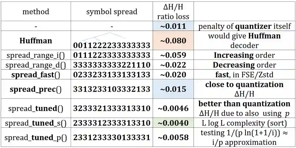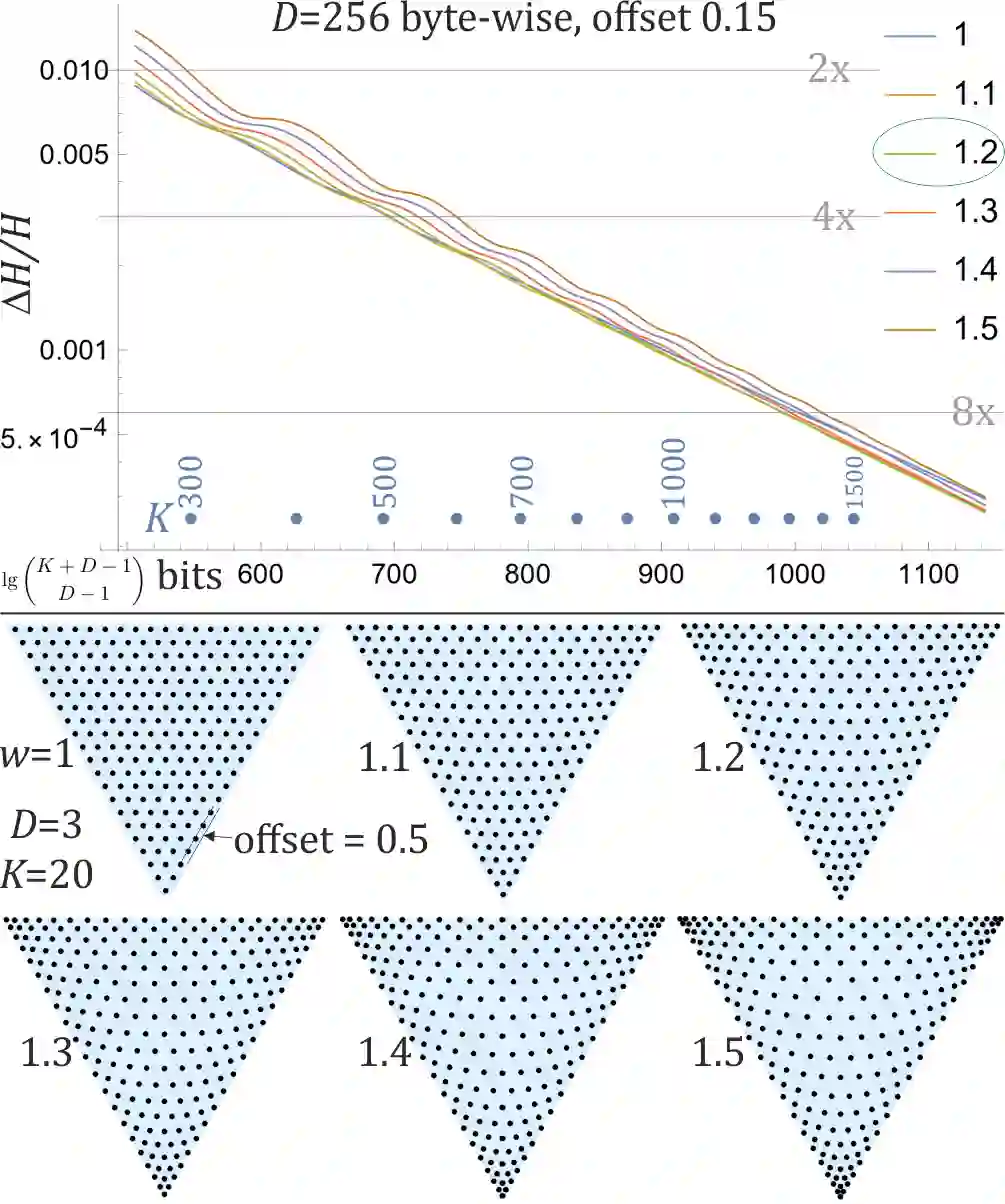 翻译:许多数据压缩器定期编码用于加密编码的概率分布 - 需要最短描述的优化类型。 Canonical priix/Huffman 编码通常只是写出比特序列的长度, 以这种方式接近2号功率的概率。 在更精确的概率情况下操作通常可以改善压缩比率, 并且有可能使用算术编码和亚称数字数字系统组。 特别是后一种变式( tANS) 通常取代Huffman 编码, 这是因为在类似的计算成本下压缩更好了, 例如在Facebook Zstand 和 Apple LZFSE 流行压缩器中。 讨论过这种应用的概率分布的编码, 特别是使用Pyramid Victor Quatizer (PVQ) 和变形法, 也对 TANS 的符号进行调控。