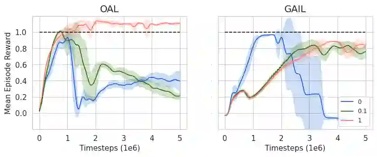 翻译:在学徒学习(AL)中,我们得到了一个没有成本功能的Markov决定程序(MDP),我们没有获得成本功能。相反,我们观察的是由一位按照某些政策行事的专家抽样的轨迹。我们的目标是找到一种与专家在某些预定义的成本功能上的表现相匹配的政策。我们引入了AL(在线学徒学习;OAL)的在线变体(在线学徒学习;OAL),预计代理商在与环境互动时能够与专家的轨迹数量相对应。我们表明,OAL问题可以通过两种基于无回报的镜谱下行算法相结合来有效解决。一种基于政策优化的反向下行法,另一种用于学习最坏的个案成本。我们通过乐观的探索,我们得出一种与美元(sqrt{K}) 相匹配的算法,其中$(sqoqrt{K}) 是与MDP互动的次数,另外一种线性错误术语,取决于专家的轨迹数量。重要的是,我们的算法避免了在每次轨迹上解决MDP的需要,使其与以前的方法比较更为实用。最后,我们用一个与AL方法来得出最差的算法。最后,我们用高的GAAL}的变式算法,我们学习了一种高的变式,我们用GAALLALALLA。