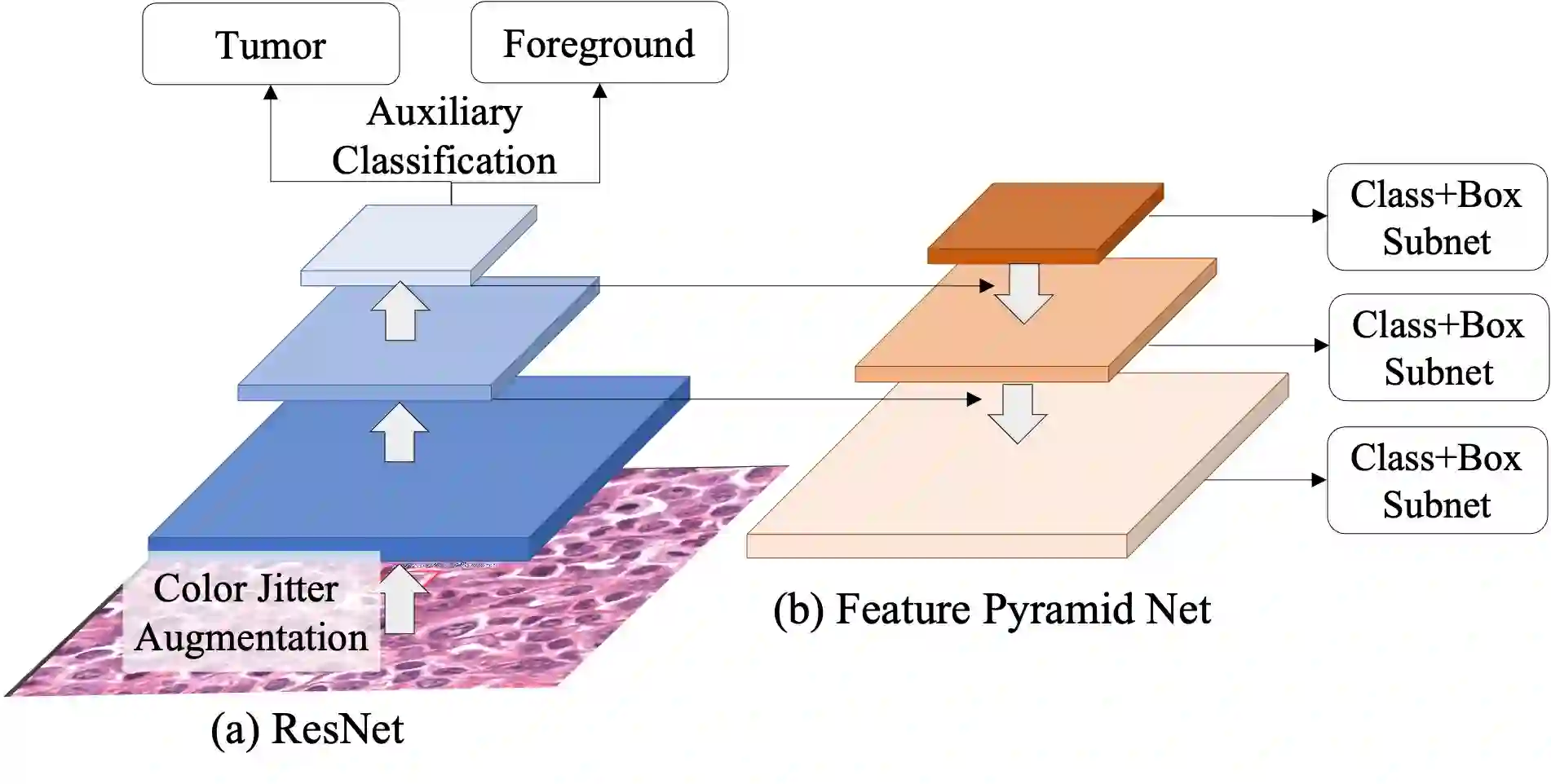 翻译:肿瘤诊断的一个关键特征是线性细胞的描述。然而,由于线性细胞形态的变异性,检测肿瘤组织中的线性细胞是一项极具挑战性的任务。与此同时,尽管先进的深层学习方法在细胞检测方面取得了巨大成功,但当从另一个领域(即不同的肿瘤类型和不同的扫描仪)测试数据时,性能往往不尽人意。因此,有必要制定算法,在域变换情景中以稳健的方式探测线性细胞。我们的工作进一步提议根据基线(Retinannet)进行地面探测和肿瘤分类,并利用数据增强来改进我们模型的广域性性能。我们实现了最先进的性能(F1分:0.5809),即具有挑战性的预科性测试数据集。