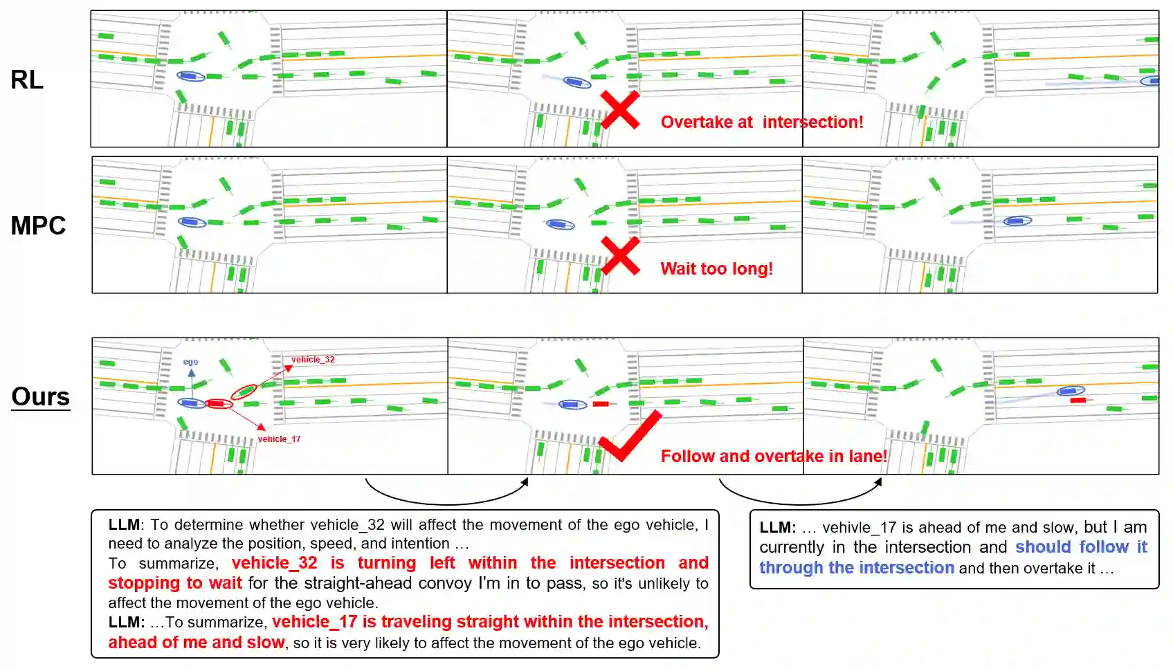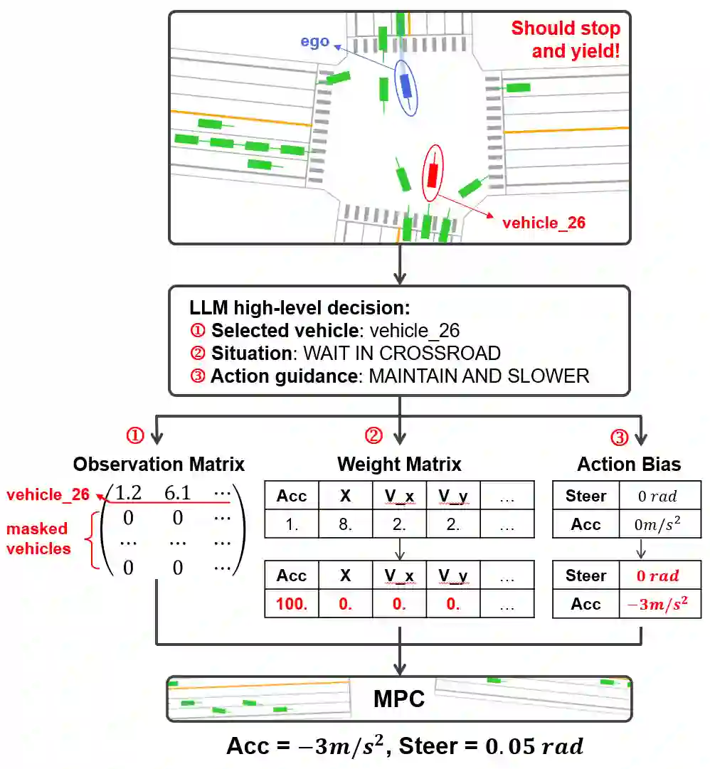 Existing learning-based autonomous driving (AD) systems face challenges in comprehending high-level information, generalizing to rare events, and providing interpretability. To address these problems, this work employs Large Language Models (LLMs) as a decision-making component for complex AD scenarios that require human commonsense understanding. We devise cognitive pathways to enable comprehensive reasoning with LLMs, and develop algorithms for translating LLM decisions into actionable driving commands. Through this approach, LLM decisions are seamlessly integrated with low-level controllers by guided parameter matrix adaptation. Extensive experiments demonstrate that our proposed method not only consistently surpasses baseline approaches in single-vehicle tasks, but also helps handle complex driving behaviors even multi-vehicle coordination, thanks to the commonsense reasoning capabilities of LLMs. This paper presents an initial step toward leveraging LLMs as effective decision-makers for intricate AD scenarios in terms of safety, efficiency, generalizability, and interoperability. We aspire for it to serve as inspiration for future research in this field. Project page: https://sites.google.com/view/llm-mpc