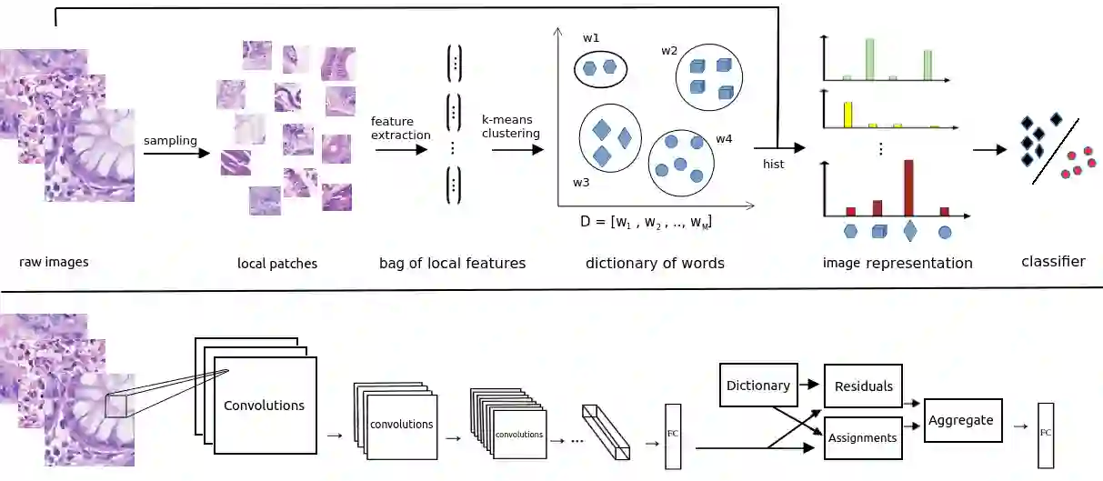 翻译:认识多igapixel病理学图象中存在的各种类型的组织是下游分析肿瘤微环境的重要基本先决条件,在计算病理的自下而上的分析模式中,这是对肿瘤微环境进行下游分析的一个重要基本先决条件。在本文中,我们建议采用深本字典学习方法,以解决组织在组织图象中的分泌问题。我们建议采用深多分辨率字典学习(深本字典学习),以便从多种不同空间分辨率的深度纹理描述器中受益。我们通过对不同器官(白外癌、乳腺癌和乳腺淋巴球)和任务(即癌症分级、组织分泌、肿瘤检测和组织类型分类)的四种基准组织图象数据集进行广泛实验,显示了拟议方法的效力。我们还表明,拟议框架可以使用大多数现成的CNN模型来生成有效的深层纹理描述器。