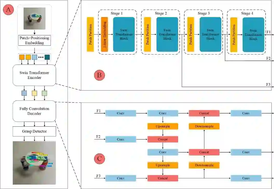 翻译:目前,变异器机制已被成功应用于视觉任务,其全球背景信息提取的极强能力提供了一种可行的方法来改进在杂乱的场景中机器人捕捉探测的性能。然而,原变异器模型的演化偏差能力不足,需要大规模的数据元件训练,难以探测。在本文中,我们提议了一个基于编码器解码器结构的抓取探测模型。编码器使用变异器网络来提取全球背景信息。解码器使用完全卷动的神经网络来提高模型的感应偏差能力,并结合编码器提取的特征来预测最终的抓取配置。VMRD数据集实验表明,我们的模型在重叠的物体场景中表现得更好。同时,在Cornellsp Gra数据集上,我们的方法达到了98.1%的准确率,这与最新算法相当。