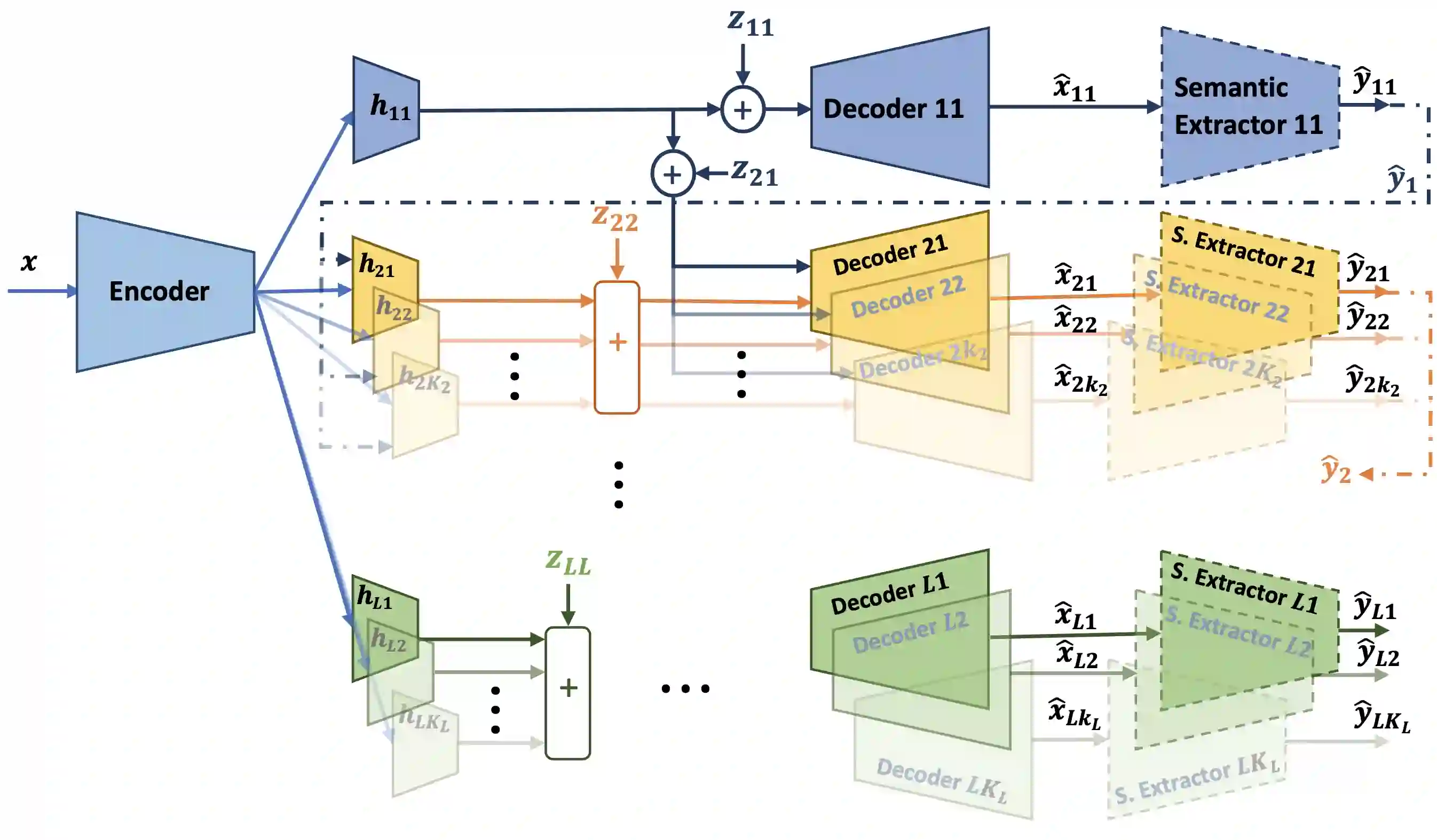 Deep learning based joint source-channel coding (JSCC) has demonstrated significant advancements in data reconstruction compared to separate source-channel coding (SSCC). This superiority arises from the suboptimality of SSCC when dealing with finite block-length data. Moreover, SSCC falls short in reconstructing data in a multi-user and/or multi-resolution fashion, as it only tries to satisfy the worst channel and/or the highest quality data. To overcome these limitations, we propose a novel deep learning multi-resolution JSCC framework inspired by the concept of multi-task learning (MTL). This proposed framework excels at encoding data for different resolutions through hierarchical layers and effectively decodes it by leveraging both current and past layers of encoded data. Moreover, this framework holds great potential for semantic communication, where the objective extends beyond data reconstruction to preserving specific semantic attributes throughout the communication process. These semantic features could be crucial elements such as class labels, essential for classification tasks, or other key attributes that require preservation. Within this framework, each level of encoded data can be carefully designed to retain specific data semantics. As a result, the precision of a semantic classifier can be progressively enhanced across successive layers, emphasizing the preservation of targeted semantics throughout the encoding and decoding stages. We conduct experiments on MNIST and CIFAR10 dataset. The experiment with both datasets illustrates that our proposed method is capable of surpassing the SSCC method in reconstructing data with different resolutions, enabling the extraction of semantic features with heightened confidence in successive layers. This capability is particularly advantageous for prioritizing and preserving more crucial semantic features within the datasets.