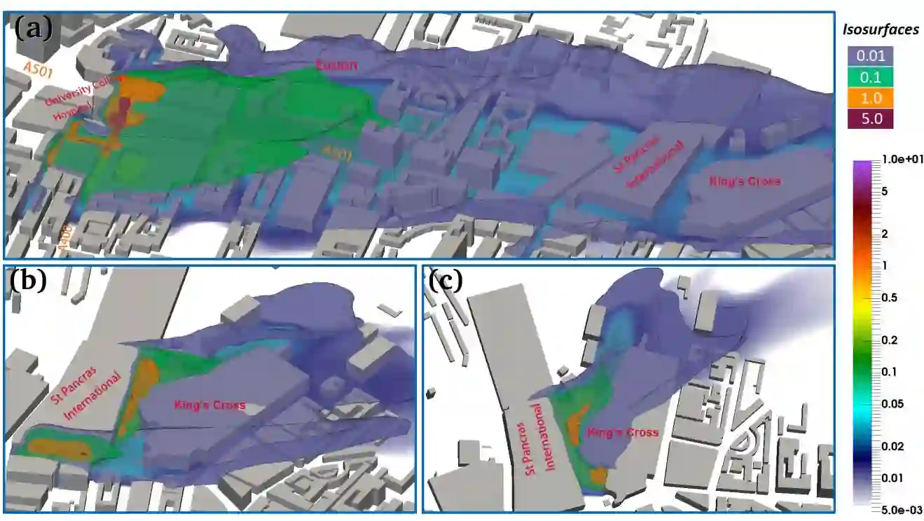 翻译:最近的一项研究报告说,气雾化病毒(COVID-19)可在空气中存活几小时,人们极有可能通过呼吸和接触受气雾化病毒污染的物品而感染该疾病,然而,各种气象环境中的气雾化病毒传播和轨迹仍不清楚,本文件调查了气雾化病毒从高浓度来源在密集的城市地区的移动情况,案例研究考察了伦敦高度空气污染的地区:大学学院医院(UCH)和国王十字架和圣潘克拉斯国际站(KCSPI)。我们探讨了医院和火车站释放的带有规定气象条件的COVID-19的传播和衰败情况。最后的发现表明,医院和火车站释放的COVI的传播和衰败情况有三种关键结果:主要结果是,病毒有可能从距离源地的米到100米之间行走。本文对气雾化病毒从密集的出入口点释放到大气中的迁移过程进行了调查。 案例研究加强了面部用于降低感染率的病例的案例。最后发现,尽管我们从各个门点开始使用的是高污染程度的知识,但伦敦的实验室也是以高密度为基础的。