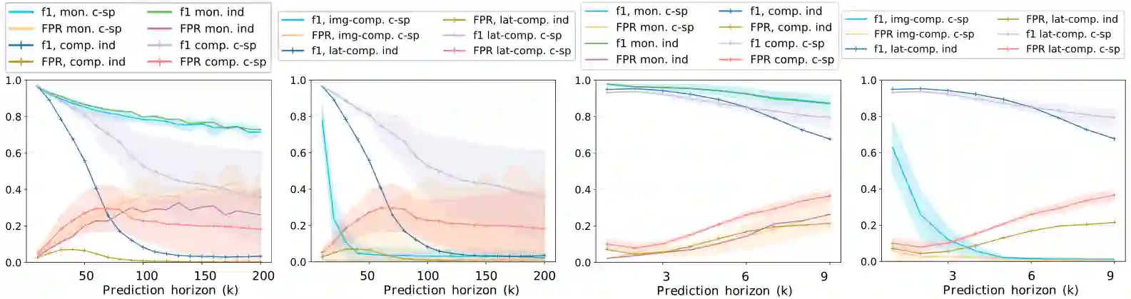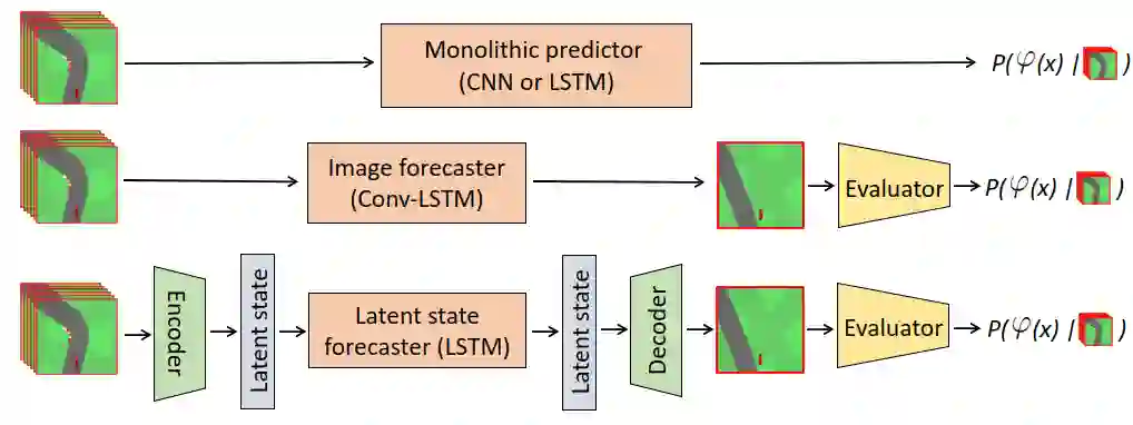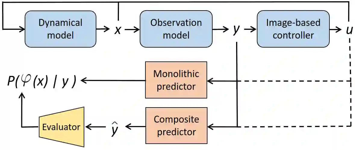 End-to-end learning has emerged as a major paradigm for developing autonomous systems. Unfortunately, with its performance and convenience comes an even greater challenge of safety assurance. A key factor of this challenge is the absence of the notion of a low-dimensional and interpretable dynamical state, around which traditional assurance methods revolve. Focusing on the online safety prediction problem, this paper proposes a configurable family of learning pipelines based on generative world models, which do not require low-dimensional states. To implement these pipelines, we overcome the challenges of learning safety-informed latent representations and missing safety labels under prediction-induced distribution shift. These pipelines come with statistical calibration guarantees on their safety chance predictions based on conformal prediction. We perform an extensive evaluation of the proposed learning pipelines on two case studies of image-controlled systems: a racing car and a cartpole.