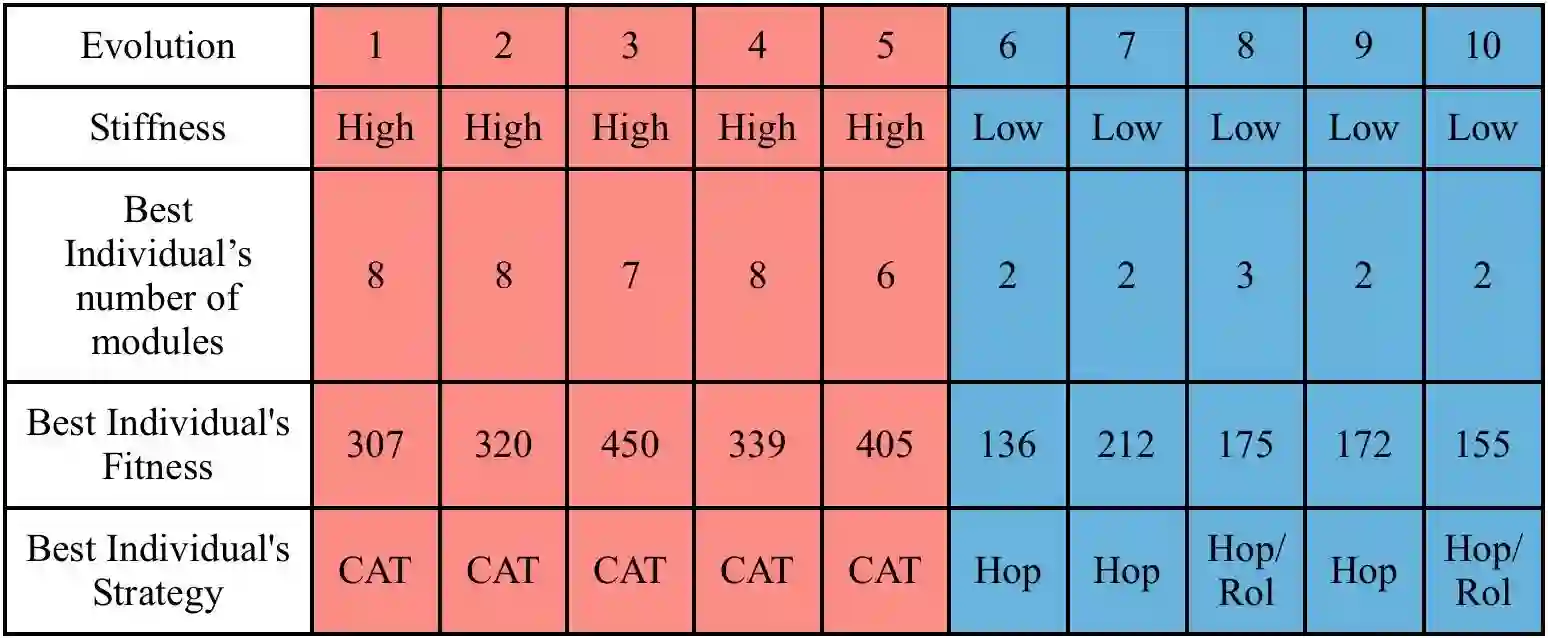 翻译:感官结构是轻量的,可以发生巨大的变形,并且具有卓越的坚固能力。 这些独特的特性激励机器人学家来调查它们的使用。 然而, 紧张机器人的形态设计、 控制、 组装和激活仍然是困难的任务。 此外, 紧张机器人的僵硬性仍然是一个低估了的设计参数。 在文章中, 我们提议使用易于组装、 引发的紧张模块和身体- 脑共变来设计软紧张模块机器人。 此外, 我们证明了紧张机器人的僵硬性的重要性, 表明进化如何根据模块的坚硬性显示不同的形态、 控制和移动战略 。