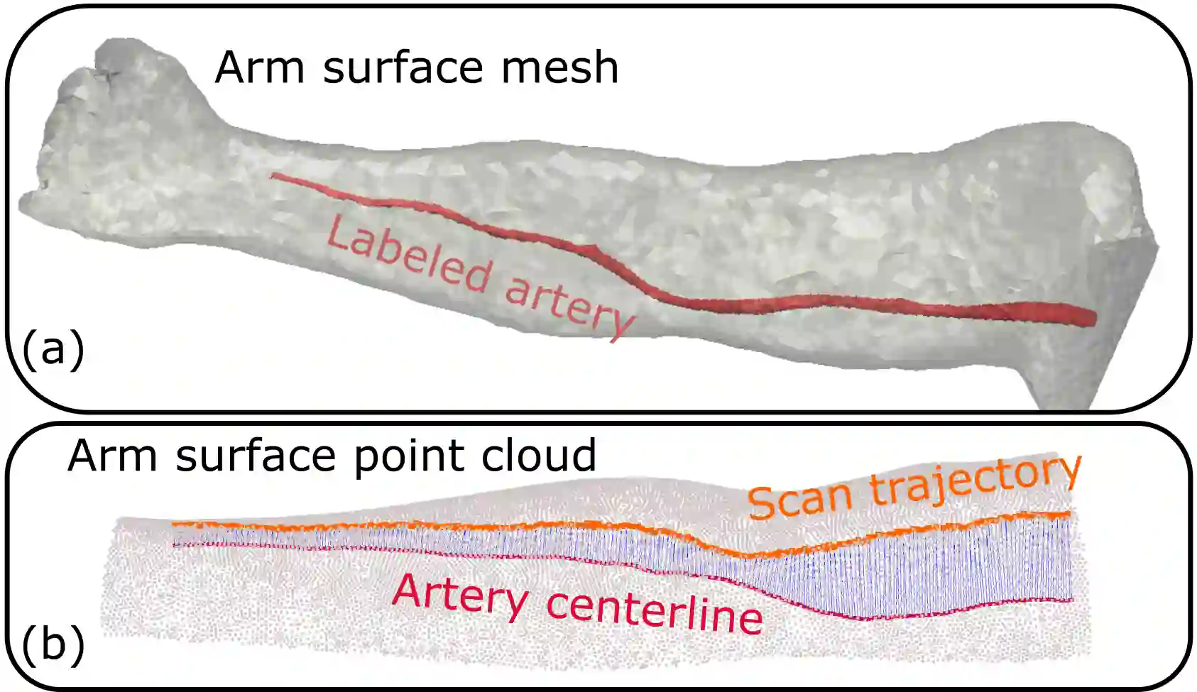 翻译:超机器人(US)成像(US)旨在克服美国自由手式检查的某些限制,例如难以保证操作者内部和操作间重复检查,然而,由于病人之间的解剖和生理差异以及解剖子结构相对移动,很难强有力地生成最佳轨迹来检查感兴趣的解剖仪,特别是当它们包含清晰的连接时。为了应对这一挑战,本文件提议了一种基于愿景的方法,允许美国自主机器人四肢扫描。为此,使用了配有附加说明血管结构的人体手臂的地图集MRI模板来生成轨迹和注册,并将其投射到患者皮肤表面,供美国机器人采购。为了有效地分割和准确地重建目标3D容器,我们利用连续的美国框架空间连续性,将频道关注模块纳入一个U-Net型神经网络。自动轨迹生成方法由6名志愿者用各种清晰的联合角度进行评估。在所有情况下,系统都能够成功地获得计划中的美元血管结构中的配有附加注释的血管结构的MRI模板,并用于将它们投射到患者的皮肤表面表面。 5号自愿扫描机的半径(1美元)使得一个可进行地面的扫描半径能。