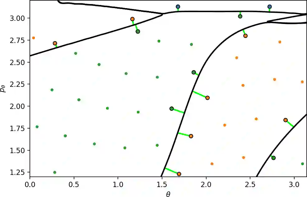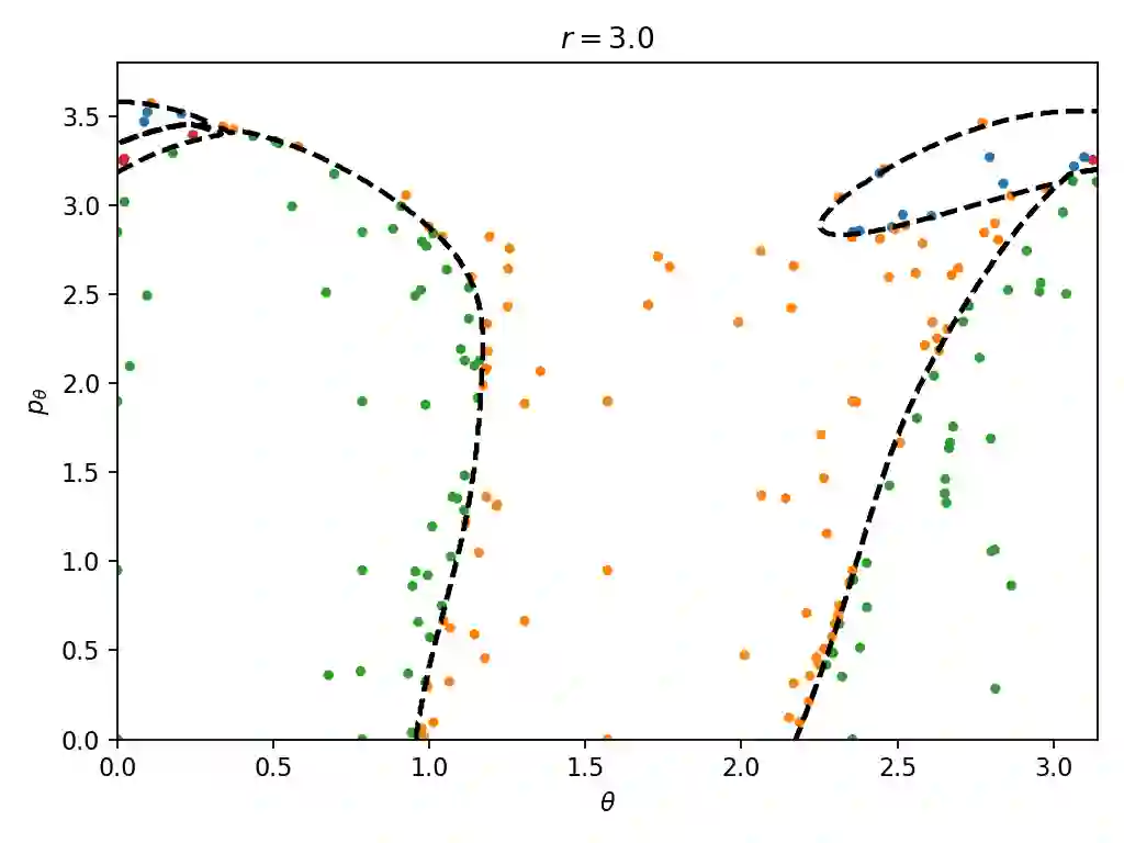 翻译:在本文中,我们使用支持矢量机器(SVM)来开发一个机器学习框架,以发现能够区分不同反应路径的相位空间结构。机器学习模型是使用汉密尔顿方程式轨迹数据进行训练的,但可用于分子动态模拟。这个框架的具体设计是为了要求对系统动态的初始条件有最低限度的先验知识。我们用一个模型汉密尔顿仪来测定我们的方法,以模拟切斯纳维奇的离子和分子的反应,该模型由两部分组成:一个硬的、对称顶部,代表$\text{CH ⁇ 3 ⁇ 3 ⁇ $离子,一个移动的 $\text{H}美元原子。我们从轨迹开始,使用辅助矢量机器来确定与不同轨迹轨迹相匹配的初始条件之间的界限。然后我们表明,不同轨迹类别之间的这些界限大约是切斯纳维奇模型早期分析中观察到的同一类型空间结构。我们的方法设计为更高维度应用的延伸,而一个移动顶部的顶部是高维应用,因此,即使现有系统在高维度上也非常适合工作的方法。