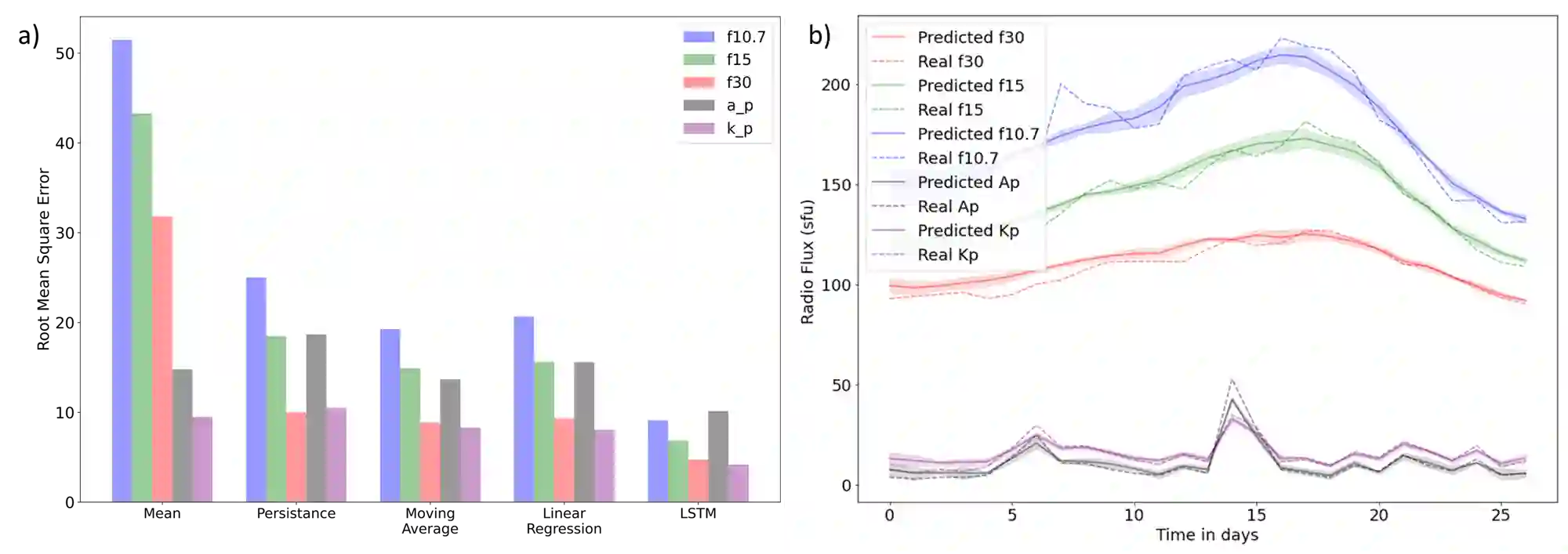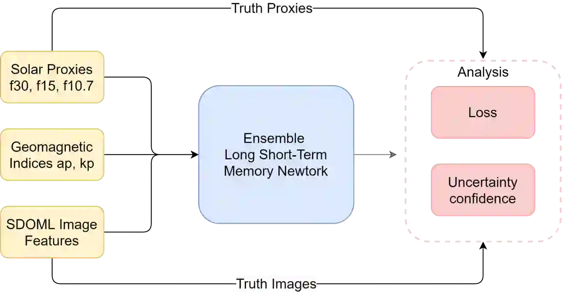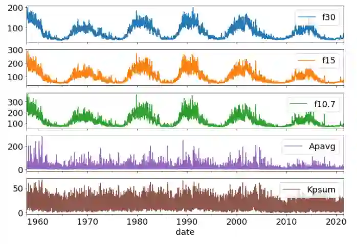翻译:太阳无线电通量以及地磁指数是太阳活动及其影响的重要指标,耀斑和地磁风暴等极端太阳事件可能对空间环境包括低地球轨道卫星产生消极影响,因此,预测这些空间气象指数对空间活动和科学非常重要。在本研究中,我们提出了一个基于长期短期记忆神经网络的模型,以学习时间序列数据的分布,从而有能力利用时间序列和太阳图像数据同时提供多变27天空间天气指数预报。我们显示,根平均差30-40 ⁇ 改进了太阳图像数据,与仅使用时间序列数据相比,包括时间序列数据,同时使用时间序列数据。诸如持久性和运行中平均预测等简单基线也与经过训练的深神经网络模型进行比较。我们还用模型共振量来量化我们预测中的不确定性。
