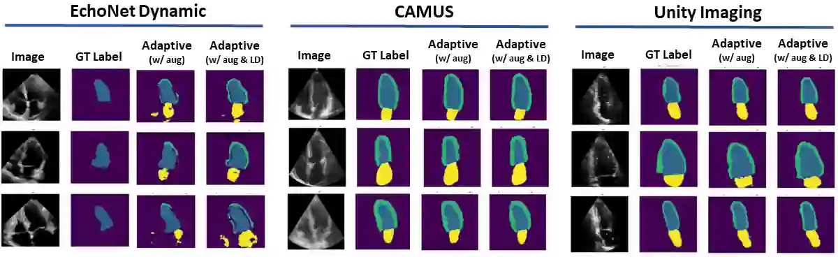 Echocardiography (echo) is the first imaging modality used when assessing cardiac function. The measurement of functional biomarkers from echo relies upon the segmentation of cardiac structures and deep learning models have been proposed to automate the segmentation process. However, in order to translate these tools to widespread clinical use it is important that the segmentation models are robust to a wide variety of images (e.g. acquired from different scanners, by operators with different levels of expertise etc.). To achieve this level of robustness it is necessary that the models are trained with multiple diverse datasets. A significant challenge faced when training with multiple diverse datasets is the variation in label presence, i.e. the combined data are often partially-labelled. Adaptations of the cross entropy loss function have been proposed to deal with partially labelled data. In this paper we show that training naively with such a loss function and multiple diverse datasets can lead to a form of shortcut learning, where the model associates label presence with domain characteristics, leading to a drop in performance. To address this problem, we propose a novel label dropout scheme to break the link between domain characteristics and the presence or absence of labels. We demonstrate that label dropout improves echo segmentation Dice score by 62% and 25% on two cardiac structures when training using multiple diverse partially labelled datasets.