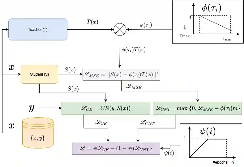 翻译:知识蒸馏(KD)被广泛用于自然语言理解(NLU)任务,目的是通过从更大的模型(教师)传授知识来改进小型模型(学生)的普及化。虽然KD方法在许多环境中取得了最先进的表现,但它们遇到了若干限制其业绩的问题。文献显示,教师和学生网络的能力差距可以使KD失去效力。此外,现有的KD技术不能减轻教师产出中的噪音:模拟教师的吵闹行为可以分散学生学习更有用的特征的注意力。我们提出了一种新的KD方法,以解决这些问题并促进与以往技术相比的培训。在继续优化的激励下,我们设计了一个培训程序,从这一目标的平滑版本开始,随着培训的进行而使其更为复杂。我们的方法(继续-KD)在NLU(GLUE基准)和计算机视觉任务(CIFAR-10和CIFAR-100)的各种紧凑结构中达到了最先进的业绩。