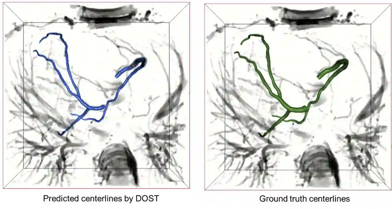 翻译:现有算法已经制定,但存在某些长期问题,例如船舶追踪不完全或不准确,特别是在复杂的血管床,如室内动脉动脉等复杂的血管床。我们在此建议采用基于深学习的开放曲线活轮廓模型(DOST),以3D图像跟踪船只。初步曲线是从中线神经网络中建议出来的。然后,数据驱动机知识被用来预测最初曲线的伸展方向和船体半径,而主动轮廓模型(作为人类知识)则保持曲线的平滑和强度。最后,考虑到大多数血管的无边表层,个别跟踪的船舶通过在全球连接图上应用最低限度的树宽度算法,与树木表相连接。我们用时光线(TOF)对DOST进行了初步曲线评估,并展示了其优于现有基于分段和跟踪的船舶轨迹的轨迹半径。此外,DOST还展示了不同的MSAS 和MSA 图像模型(DOST) 。
