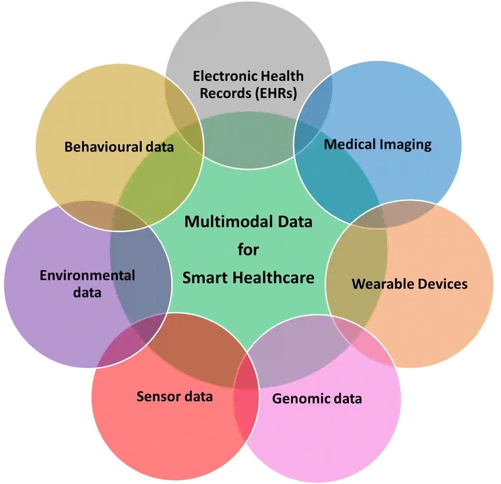 Multimodal medical data fusion has emerged as a transformative approach in smart healthcare, enabling a comprehensive understanding of patient health and personalized treatment plans. In this paper, a journey from data to information to knowledge to wisdom (DIKW) is explored through multimodal fusion for smart healthcare. We present a comprehensive review of multimodal medical data fusion focused on the integration of various data modalities. The review explores different approaches such as feature selection, rule-based systems, machine learning, deep learning, and natural language processing, for fusing and analyzing multimodal data. This paper also highlights the challenges associated with multimodal fusion in healthcare. By synthesizing the reviewed frameworks and theories, it proposes a generic framework for multimodal medical data fusion that aligns with the DIKW model. Moreover, it discusses future directions related to the four pillars of healthcare: Predictive, Preventive, Personalized, and Participatory approaches. The components of the comprehensive survey presented in this paper form the foundation for more successful implementation of multimodal fusion in smart healthcare. Our findings can guide researchers and practitioners in leveraging the power of multimodal fusion with the state-of-the-art approaches to revolutionize healthcare and improve patient outcomes.