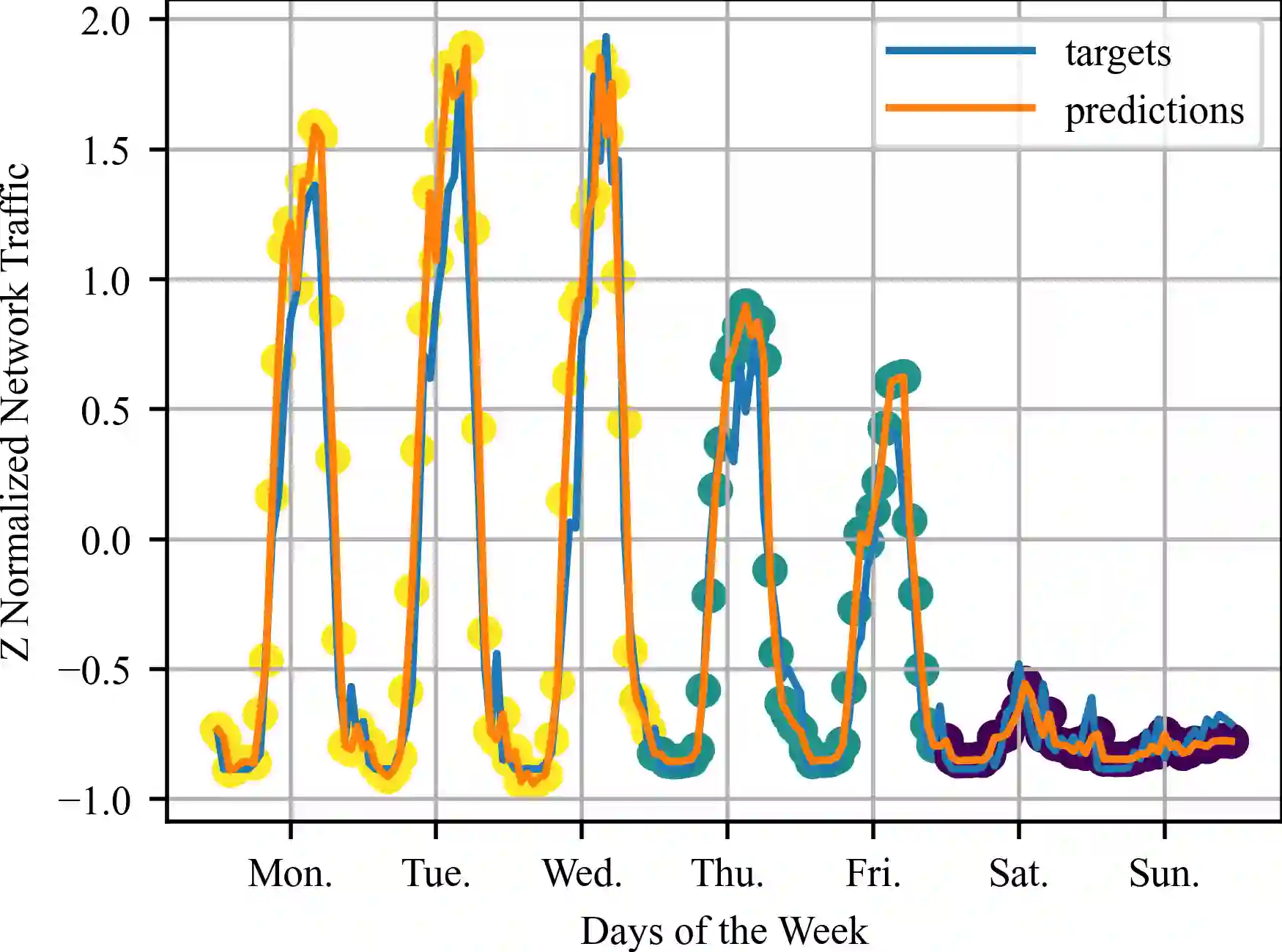We have developed a new framework using time-series analysis for dynamically assigning mobile network traffic prediction models in previously unseen wireless environments. Our framework selectively employs learned behaviors, outperforming any single model with over a 50% improvement relative to current studies. More importantly, it surpasses traditional approaches without needing prior knowledge of a cell. While this paper focuses on network traffic prediction using our adaptive forecasting framework, this framework can also be applied to other machine learning applications in uncertain environments. The framework begins with unsupervised clustering of time-series data to identify unique trends and seasonal patterns. Subsequently, we apply supervised learning for traffic volume prediction within each cluster. This specialization towards specific traffic behaviors occurs without penalties from spatial and temporal variations. Finally, the framework adaptively assigns trained models to new, previously unseen cells. By analyzing real-time measurements of a cell, our framework intelligently selects the most suitable cluster for that cell at any given time, with cluster assignment dynamically adjusting to spatio-temporal fluctuations.