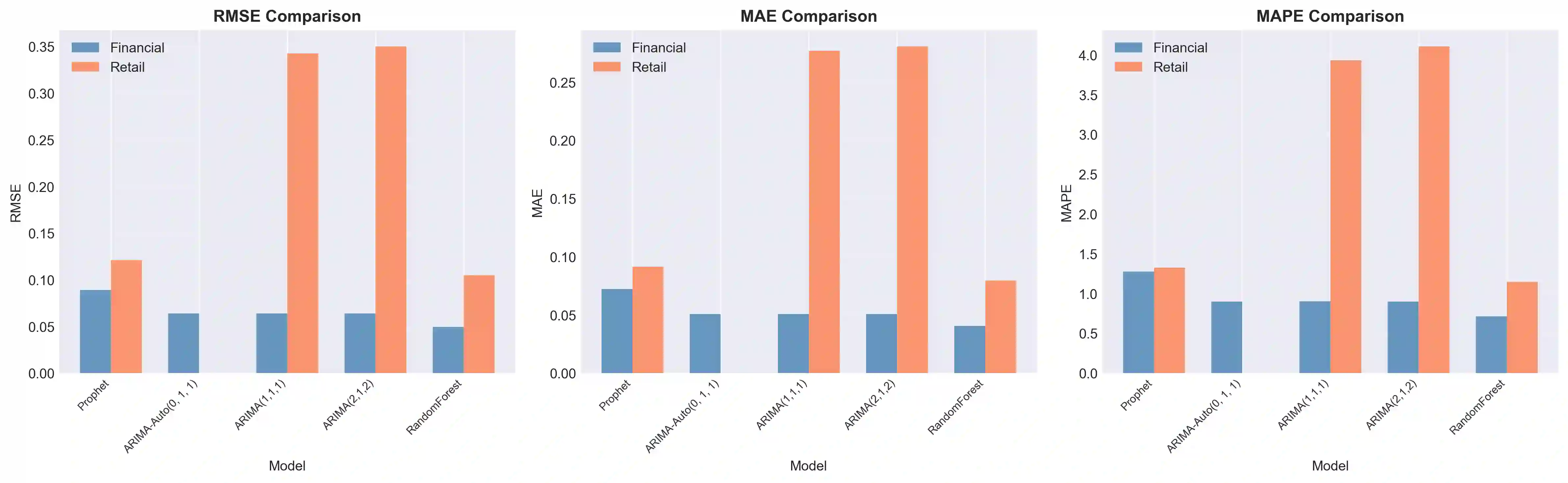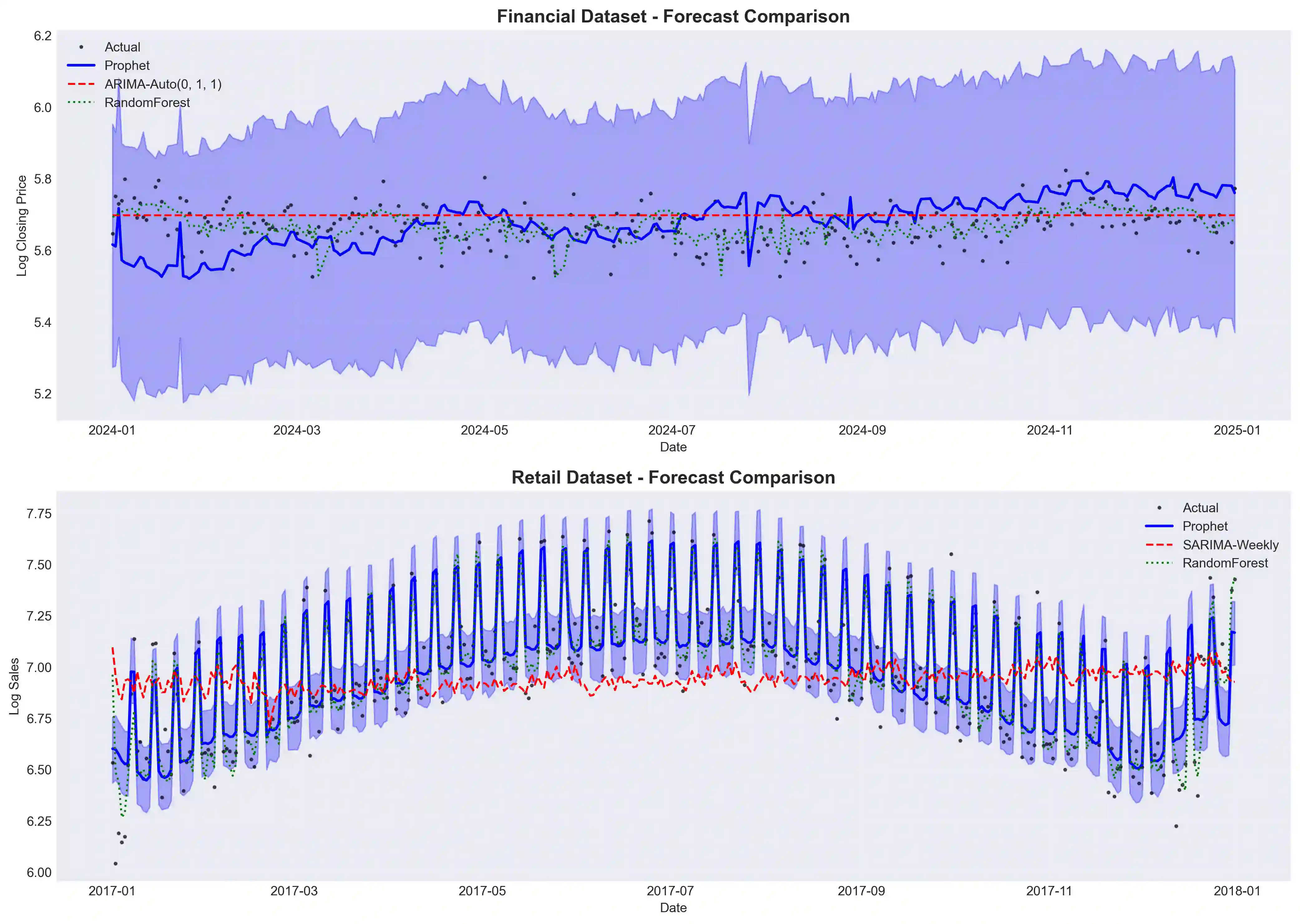 翻译:可复现性始终是预测研究与实践中持续存在的挑战,在预测结果影响重大决策的商业与金融分析领域尤为突出。传统预测方法虽在理论上可解释,但通常需要大量人工调参,且在专有环境中难以复现。机器学习方法提供了预测灵活性,却引入了可解释性、随机训练过程及跨环境可复现性等方面的挑战。本文审视了Meta公司开发的开源预测框架Prophet,将其视为一种平衡可解释性、标准化工作流程与可访问性的可复现性解决方案。本研究并未提出新算法,而是评估了Prophet的加性结构、开源实现和标准化工作流程如何促进透明且可复现的预测实践。通过使用公开的金融与零售数据集,我们在受控且完全文档化的实验设计下,将Prophet的性能和可解释性与多种ARIMA模型(自动选择型、手动指定型及季节变体)以及随机森林进行对比。这种多模型比较为Prophet的相对性能与可复现性优势提供了稳健评估。通过具体的Python示例,我们展示了Prophet如何促进高效预测工作流及其与分析管道的集成。本研究将Prophet置于更广泛的可复现研究背景下,强调其作为支持验证、可审计性与方法论严谨性的方法论构建模块的作用。这项工作为研究者和实践者提供了在基于Python的研究工作流中进行可复现预测的实用参考框架。