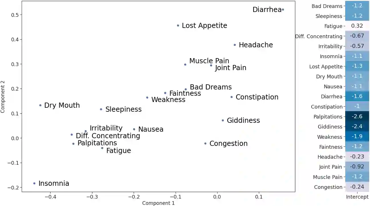 翻译:对临床问卷数据的分析面临许多固有的挑战,这些挑战包括处理缺少领域的数据,以及全面解释具有不同规模和形式的许多领域的数据集。虽然已经制定了许多方法来应对这些挑战,但这些方法往往不健全,统计上不健全,或者不易解释。在这里,我们提出了一个潜在要素模型框架,扩展含有缺失元素的绝对数据和定量数据的主要组成部分分析。模型同时提供了主要组成部分(基数)和每个病人在潜伏空间这些基数上的预测。我们通过渗透性鲍埃尔综合症(IBS)症状展示了我们模型框架的应用,我们发现这些预测与其他标准化患者症状尺度之间的相互关系。这一潜在要素模型很容易用于不同的临床问卷数据集进行集群分析和解释。
