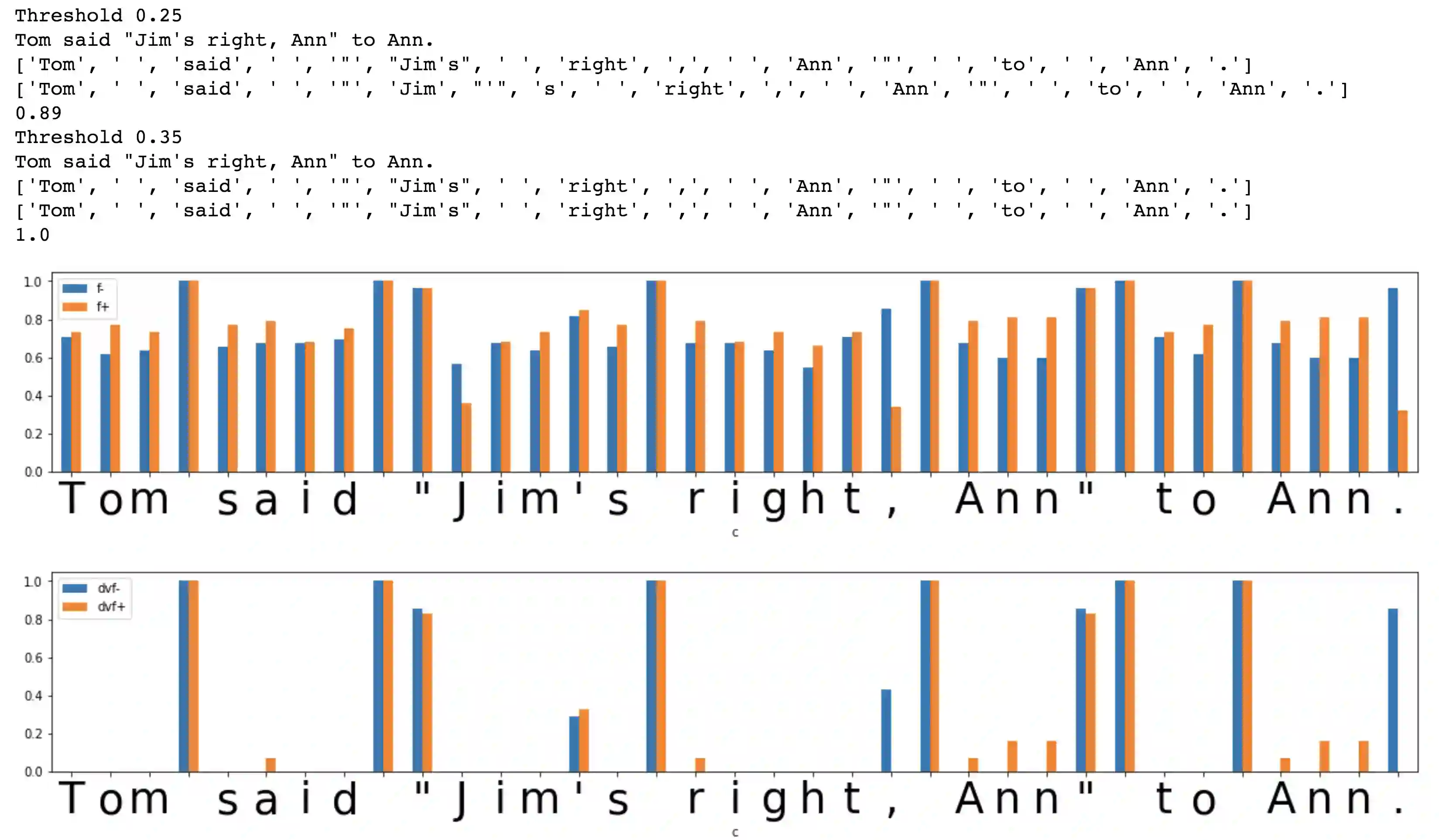 翻译:在提交的研究报告中,我们发现,与诸如相互信息和有条件概率等统计指标相比,所谓的“过渡自由”指标似乎在未经监督的象征性化方面优于诸如相互信息和有条件概率等统计指标,在所探索的多语种公司之间提供了从0.71到1.0不等的F度量分。 我们发现,不同的语言要求该指标的不同分支(如衍生物、差异和“峰值 ” ) 才能成功象征性化。 大型培训公司不一定能提高象征性化质量,而通过消除统计上薄弱的证据来压缩模型往往能提高性能。 拟议的未经监督的象征性化技术提供的质量优于或与基于词汇的技术相比,取决于语言。
