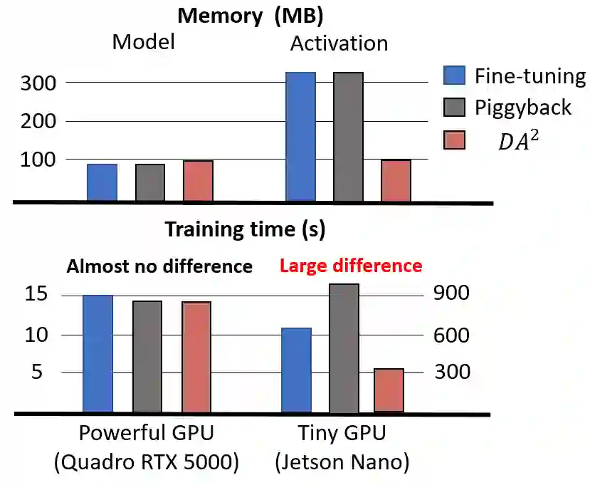 翻译:目前,深神经网络(DNN)的一个实际局限性在于它高度专业化于单一任务或领域(例如一个视觉域),它激励研究人员开发能够将DNN模型按顺序调整到多个域的算法,同时仍然在以往域运行良好,这被称为多域学习。常规方法只注重提高精确度,同时忽略最低参数更新,而忽视培训期间的高计算和记忆使用率,这使得无法将更多、更广泛使用的资源有限的边缘设备,如移动电话、IOT、嵌入系统等。在我们的研究中,我们发现激活存储所用的记忆是瓶颈,它基本上限制边设备的培训时间和成本。为了减少培训记忆使用率,同时保持域的精确性能,在本工作中,我们建议深度关注调适量多域学习方法,目的是以快速和记忆效率的方式实现对资源有限的边端设备的域调整。在在线培训期间,DA2 冻结了前精度的精度模型的重量,以降低培训的精度和成本比值,以降低培训的精度,在升级期间,让我们的精度 升级升级到升级数据。