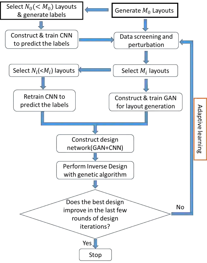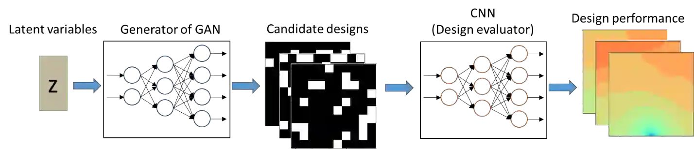 翻译:在许多领域都遇到布局设计设计,对于设计自由程度众多的问题,设计方法的效率成为一大问题。近年来,人们越来越多地使用人工神经网络等机器学习方法来加速设计过程。许多这类方法的一个主要问题是需要使用高维模拟生成的大量培训数据。与培训数据生成有关的高计算成本在很大程度上降低了通过使用机器学习方法获得的效率。在这项工作中,提出并开发了适应性人工神经网络的基因化设计方法。这种方法使用基因化对抗网络来产生设计候选人,因此设计变量的数量大大减少。为加速对目标功能的评价,设计进化神经网络作为功能评估的替代模型来构建。反向设计是与两个神经网络一起使用遗传算法进行的。提出了一种新的适应性学习和优化战略,为寻找最佳解决方案有效地探索了设计空间。这种培训数据的数量大大减少了。为了加速对目标功能的评估,拟议的设计方法的性能和最佳热源设计方法在两种最佳设计上都有问题。在两种最佳热源设计方法上进行了比较。