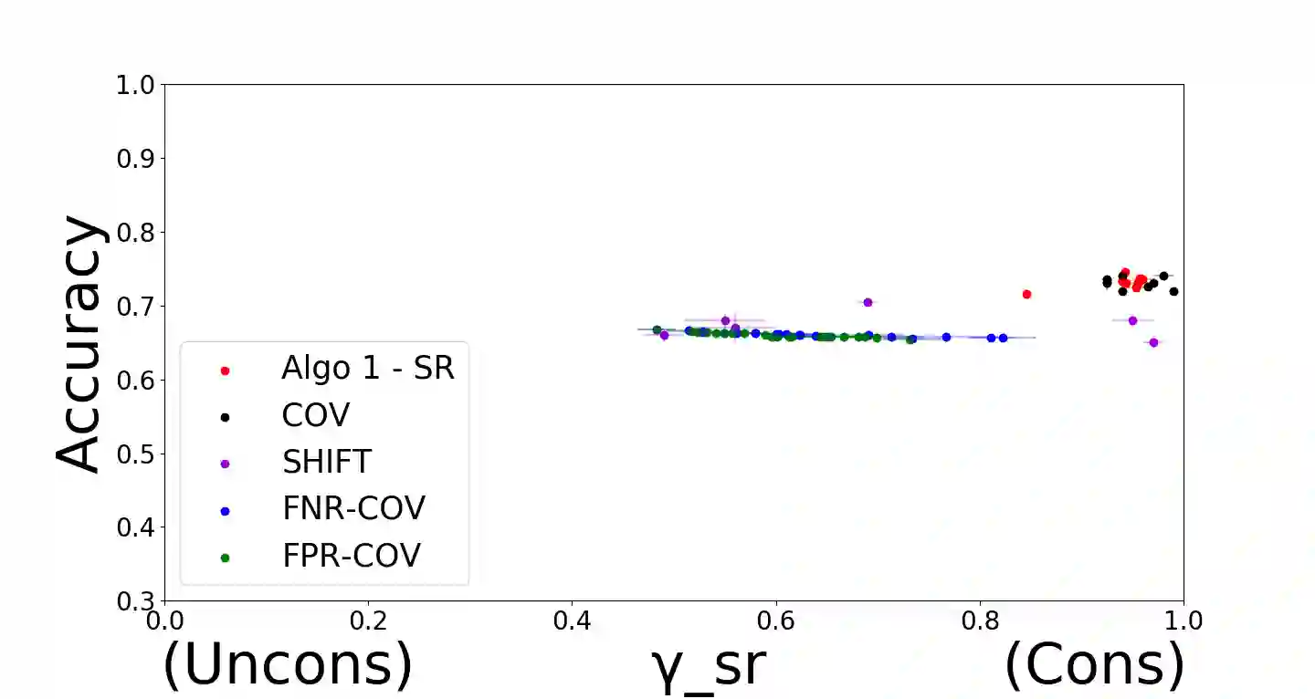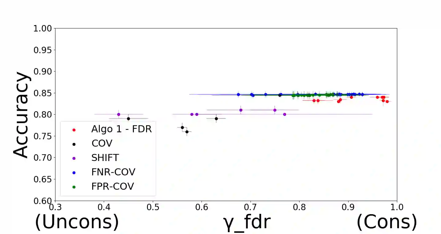 翻译:由于在各种社会背景下越来越多地采用分类算法,因此,制定对数据敏感属性公平的分类算法已成为一个重要问题。最近的一些工作侧重于在特定指标方面的公平性,将相应的公平分类问题作为有限的优化问题模型,并开发了专门的算法来解决这些问题。尽管如此,仍然有一些重要的衡量法,我们没有公平的分类方法,许多上述算法也没有理论保障;或许因为由此产生的优化问题是非隐蔽的。本文的主要贡献是一个新的分类元值,它作为大量公平限制的投入,涉及多种非互不相容的敏感属性,并带有可辨的保证。这要通过首先为大量具有同系制约的分类问题大家庭的分类问题开发一个元值来实现,然后表明与一般类型的公平制约有关的分类问题可以减少到这个家庭。我们提出的实证结果表明,我们的算法在各种公平度衡量法方面可以实现近乎于完美的公平性,在多个非互不相容的敏感属性方面,并带有可辨证的保证。这要通过先验的准确性分析法的准确性,这往往会显示,因为先前的准确性的工作要求是公平性,而有可能使公平性分析方法的精确性限制。