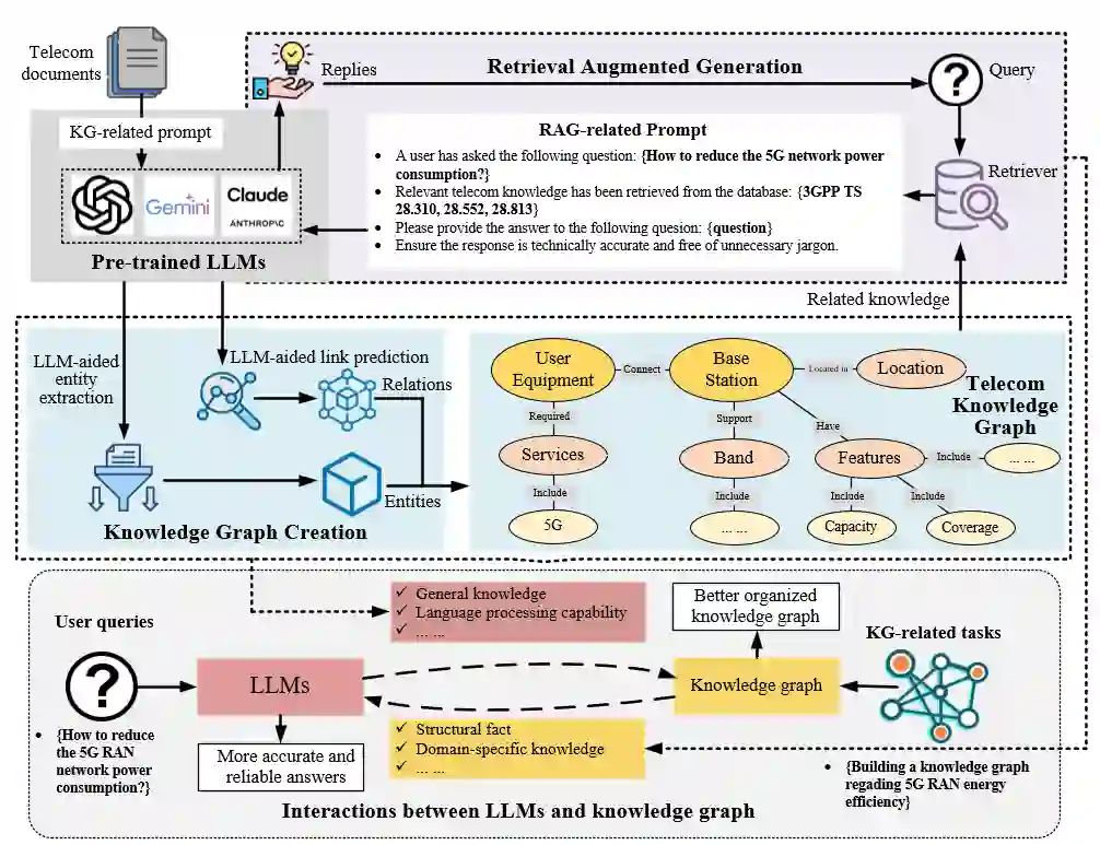 翻译:大语言模型(LLMs)已在多种任务中展现出强大潜力,但其在电信领域的应用仍面临挑战,原因在于该领域复杂度高、标准持续演进且专业术语密集。因此,通用领域的大语言模型在此情境下可能难以提供准确可靠的输出,导致幻觉增多,在电信运营中的实用性降低。为应对这些局限,本研究提出了KG-RAG——一种将知识图谱(KGs)与检索增强生成(RAG)相结合的新型框架,旨在增强大语言模型处理电信特定任务的能力。具体而言,知识图谱提供了从电信标准与技术文档中提取的领域知识的结构化表示,而检索增强生成则支持动态检索相关事实以支撑模型的输出。这种结合提升了事实准确性,减少了幻觉,并确保输出符合电信规范。在多个基准数据集上的实验结果表明,KG-RAG在性能上优于仅使用大语言模型及标准检索增强生成的基线方法,例如,KG-RAG相比检索增强生成平均准确率提升14.3%,相比仅使用大语言模型的方案提升21.6%。这些结果凸显了KG-RAG在复杂电信场景中生成准确、可靠且可解释输出方面的有效性。
