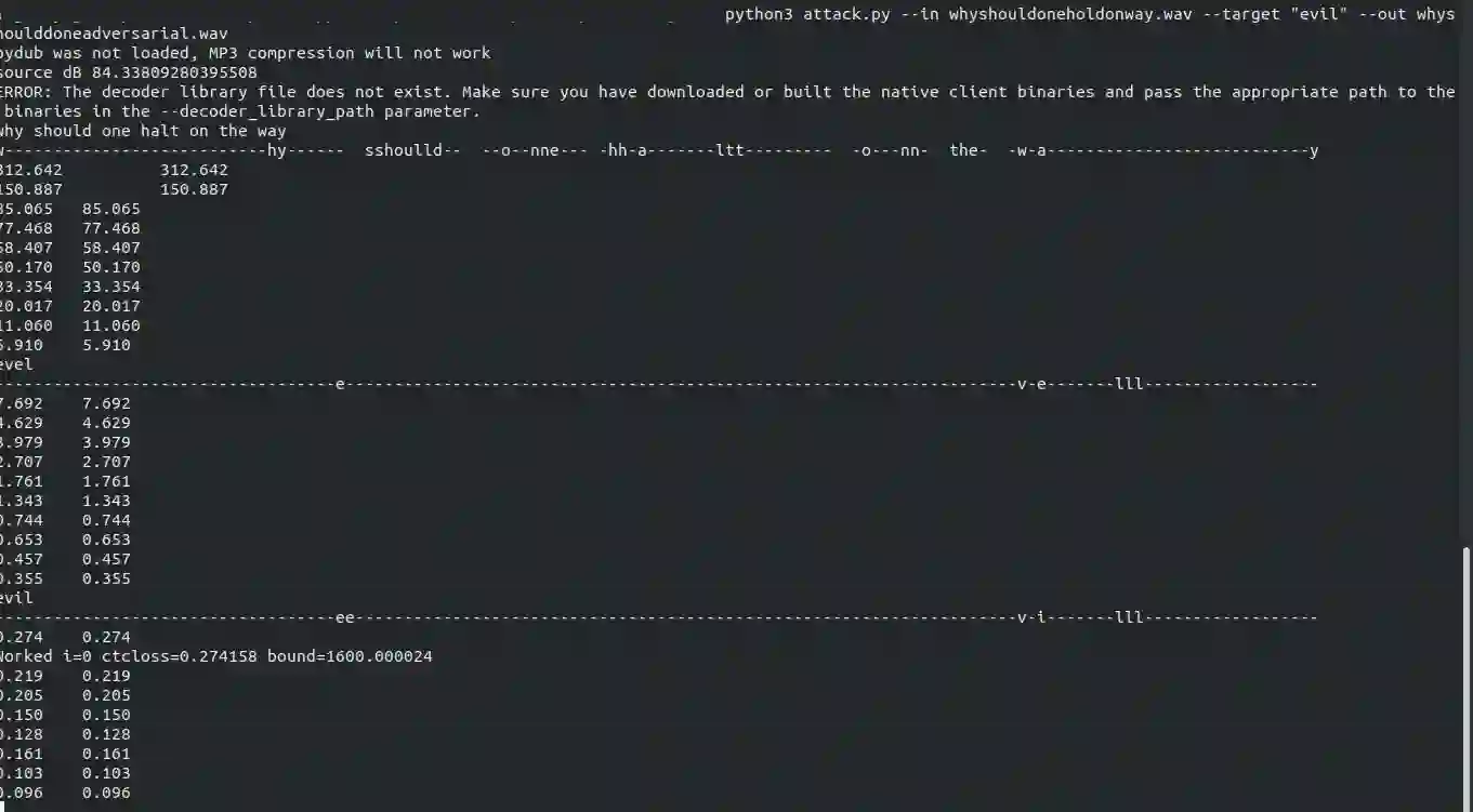 翻译:Adversarial攻击是类似于原始投入但目的上改变的输入。今天广泛使用的语音对文本神经网络容易对对抗性攻击进行错误分类。在本研究中,首先,我们通过改变共同声音数据集的波状来调查是否存在有针对性的对抗性攻击。我们通过连接体时分分分分损失功能来设计对抗性波状形式,并攻击由Mozilla实施的语音对文本神经网络DeepSpeech。我们在所有25种对抗性波状中实现100%的对抗性成功率(DeepSpeech的零成功分级)。第二,我们调查使用CPA作为防御性攻击的防御机制。我们通过将CPA应用于我们创建的25次攻击的波状形式来调查是否存在有针对性的对抗性对抗性攻击。我们观察DepsSpeech的对抗性波状形式没有成功分类,这表明CPA不是音域内一个良好的防御机制。最后,我们利用CPA这个时间在黑框下以最起码的对抗性对抗性攻击性攻击形式下进行对抗性投入。我们用100次的试验模式、参数或重量来根据不同的对抗性攻击性攻击性攻击的试样进行试验。我们又根据共同的试验模式、试验模式、测试性攻击性攻击的试制了100次进行试验。