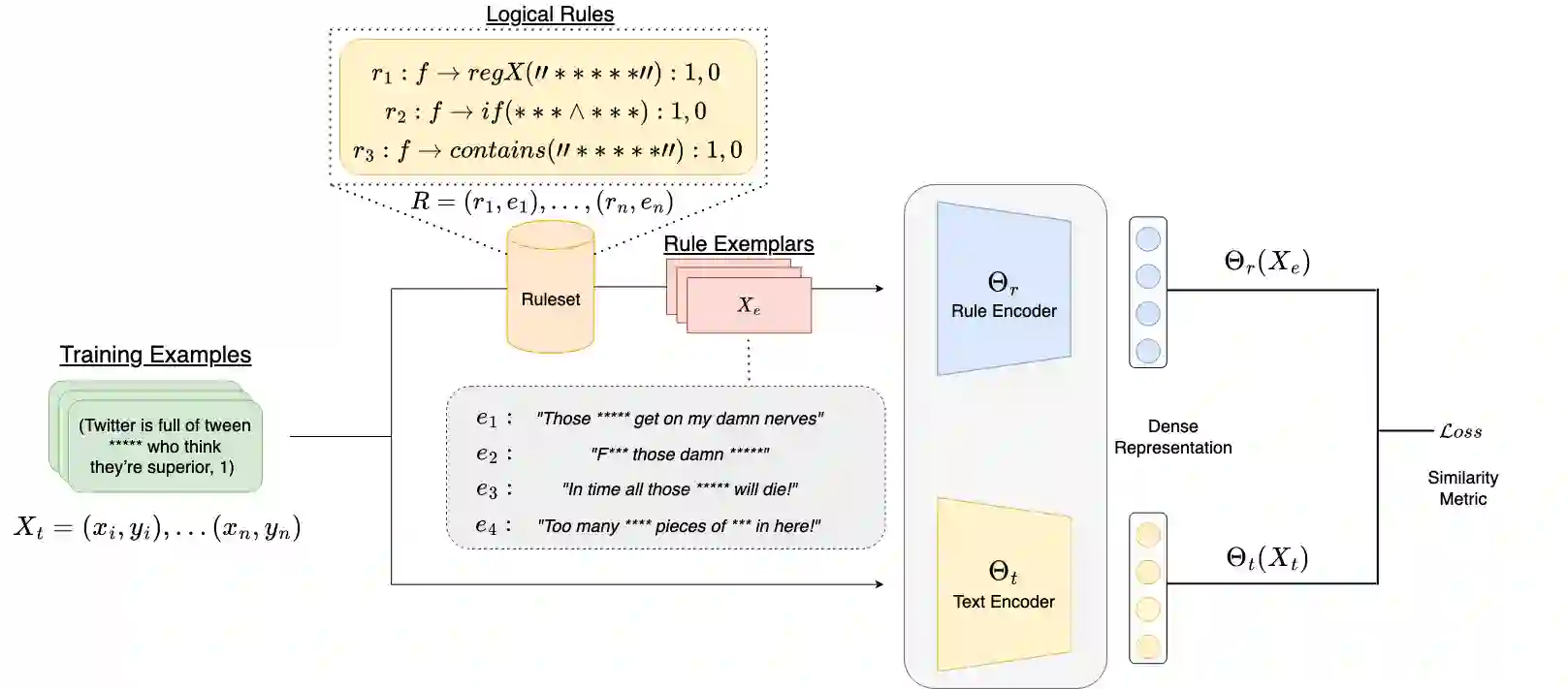 Classic approaches to content moderation typically apply a rule-based heuristic approach to flag content. While rules are easily customizable and intuitive for humans to interpret, they are inherently fragile and lack the flexibility or robustness needed to moderate the vast amount of undesirable content found online today. Recent advances in deep learning have demonstrated the promise of using highly effective deep neural models to overcome these challenges. However, despite the improved performance, these data-driven models lack transparency and explainability, often leading to mistrust from everyday users and a lack of adoption by many platforms. In this paper, we present Rule By Example (RBE): a novel exemplar-based contrastive learning approach for learning from logical rules for the task of textual content moderation. RBE is capable of providing rule-grounded predictions, allowing for more explainable and customizable predictions compared to typical deep learning-based approaches. We demonstrate that our approach is capable of learning rich rule embedding representations using only a few data examples. Experimental results on 3 popular hate speech classification datasets show that RBE is able to outperform state-of-the-art deep learning classifiers as well as the use of rules in both supervised and unsupervised settings while providing explainable model predictions via rule-grounding.